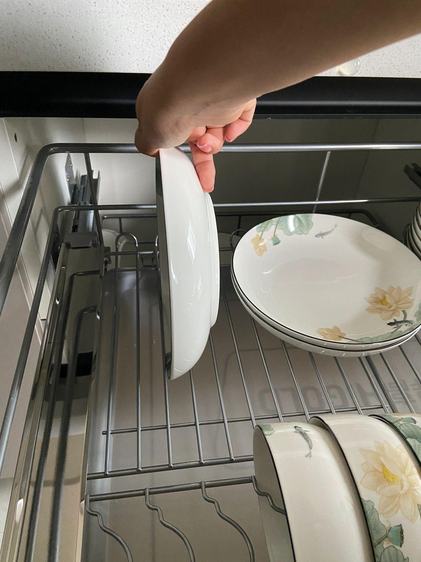 而且盤子一旦厚一點、深一點就豎着放不進去,最後只能疊放浪費更多空間,關鍵是一整個的,犄角旮旯很多還不好拆卸打掃。