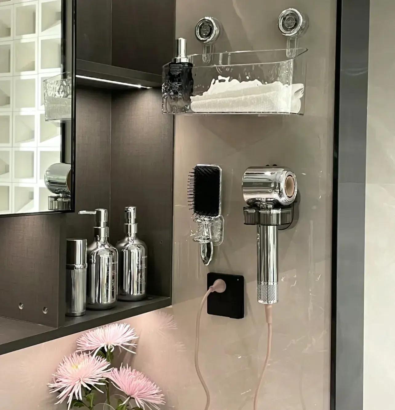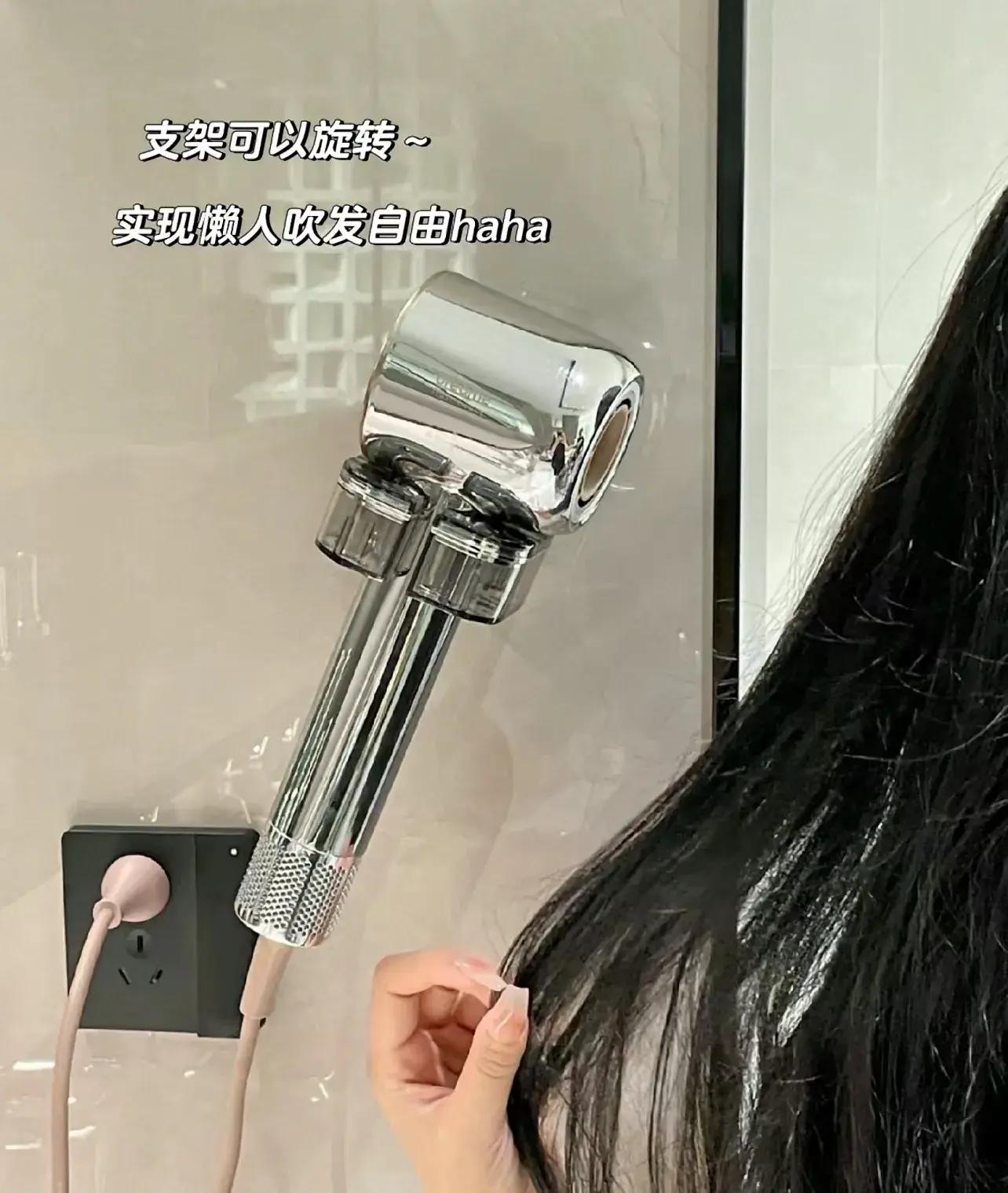 不同於普通的吹風機架,它不僅僅是一個可以把吹風機,上牆收納的物件,還是一個能「吹頭髮不用手」的支架。
