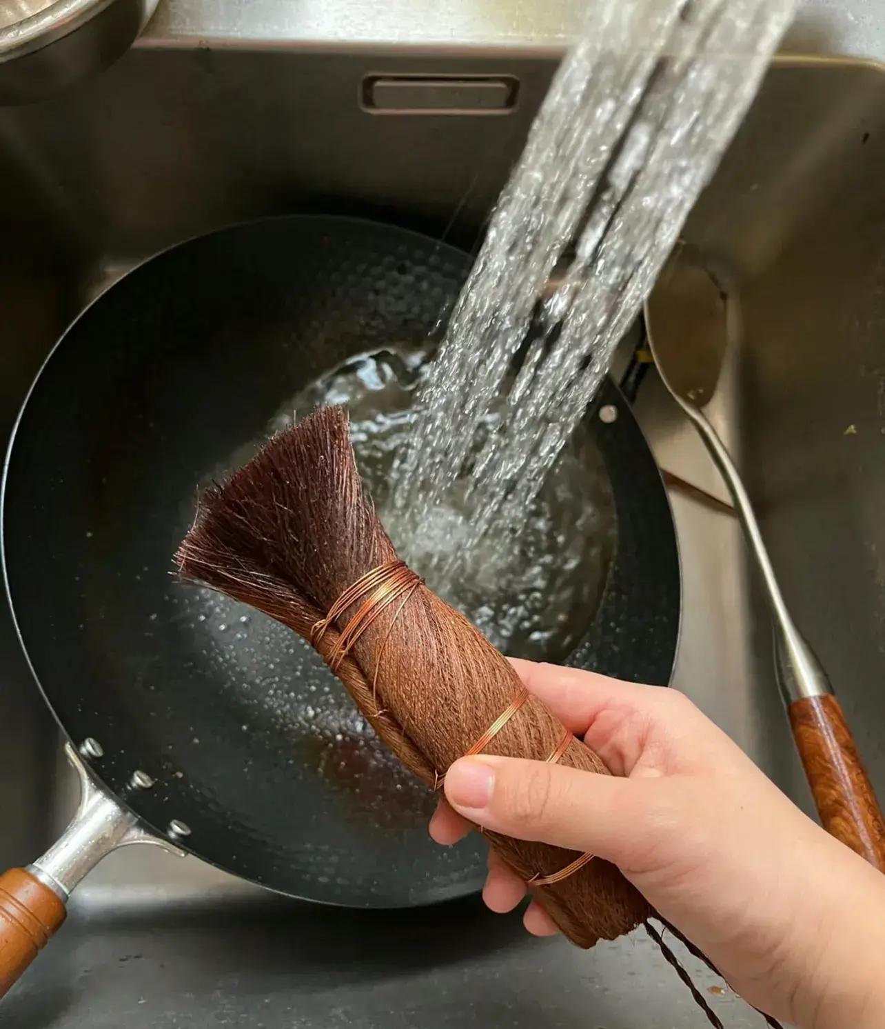 之前沒有棕櫚鍋刷的時候,我刷鍋大都是用鋼絲球。