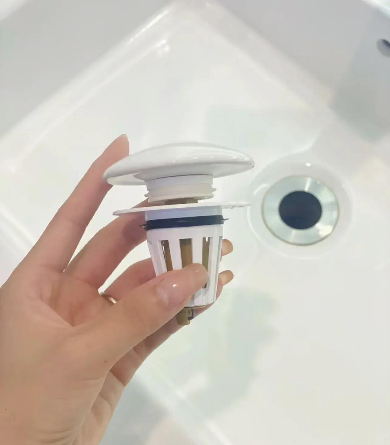 所以,當我聽說這種按壓式的陶瓷下水器,底部有一個過濾網,可以收集頭髮,避免堵塞,我就趕緊給家裏安排了一個。