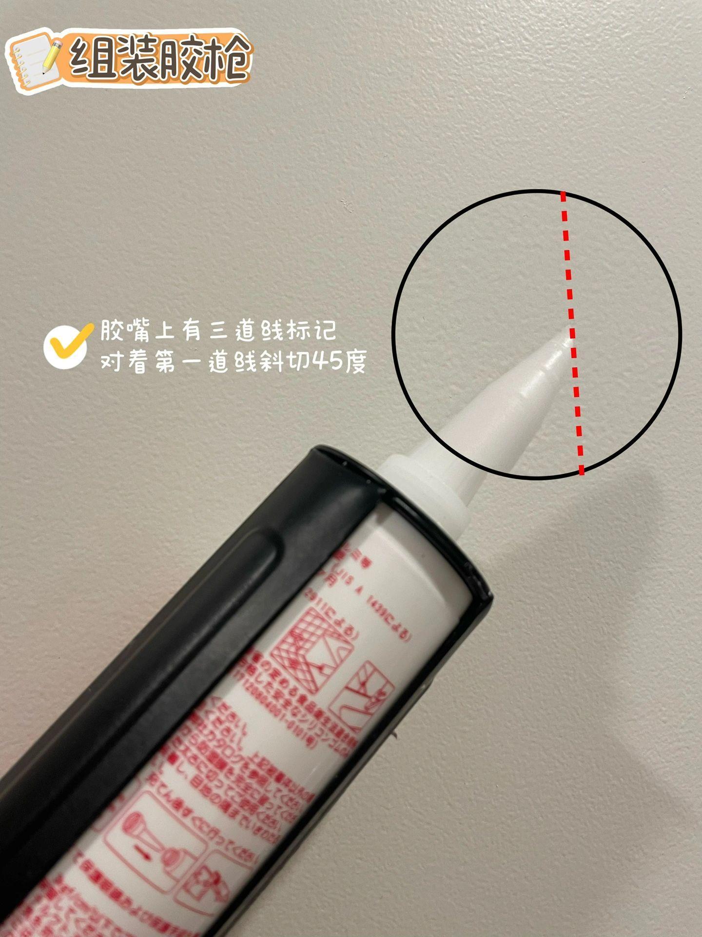 接着是組裝膠槍,在切割膠嘴時,儘量從第一道標記處斜向上45度切開。