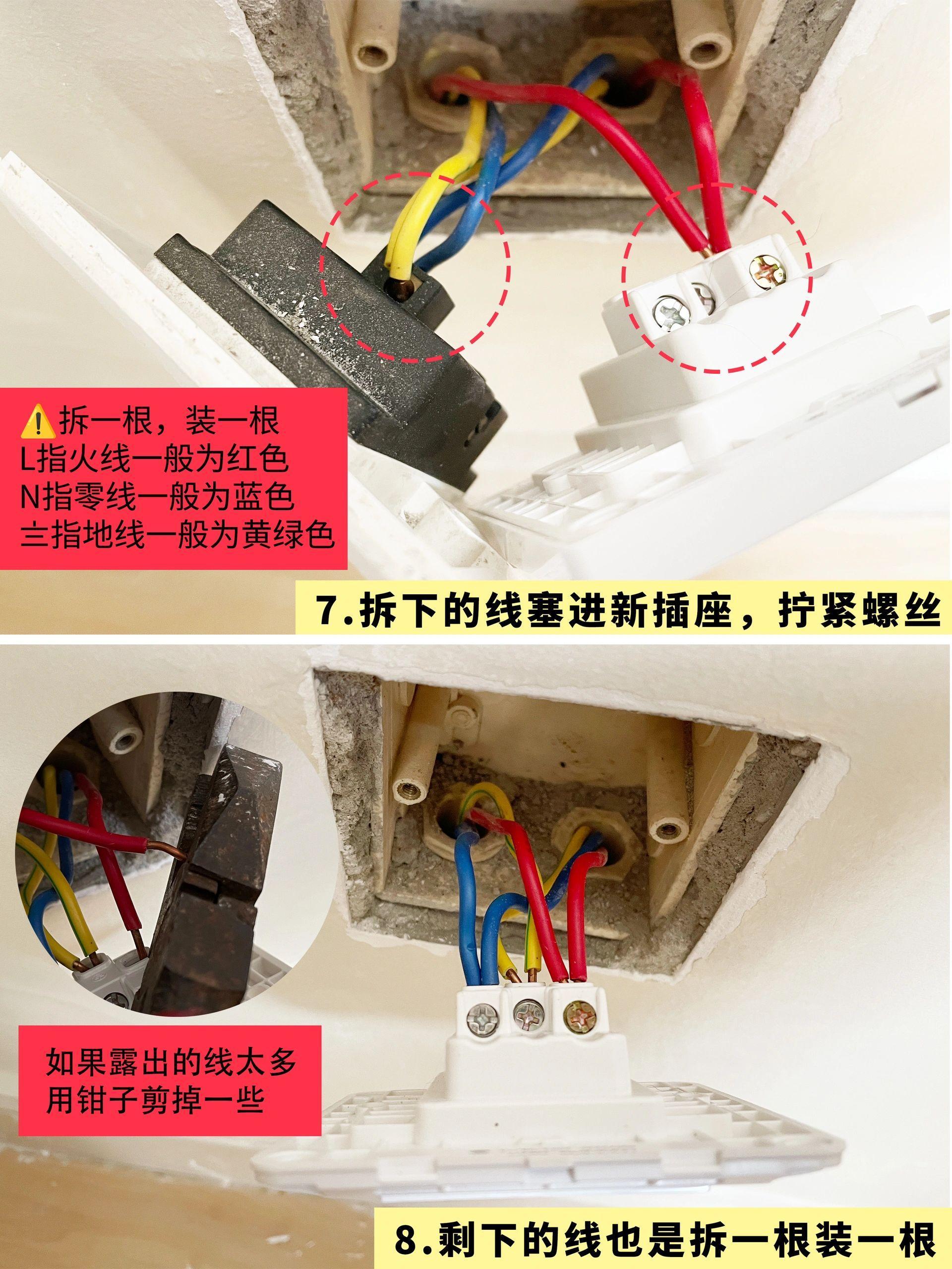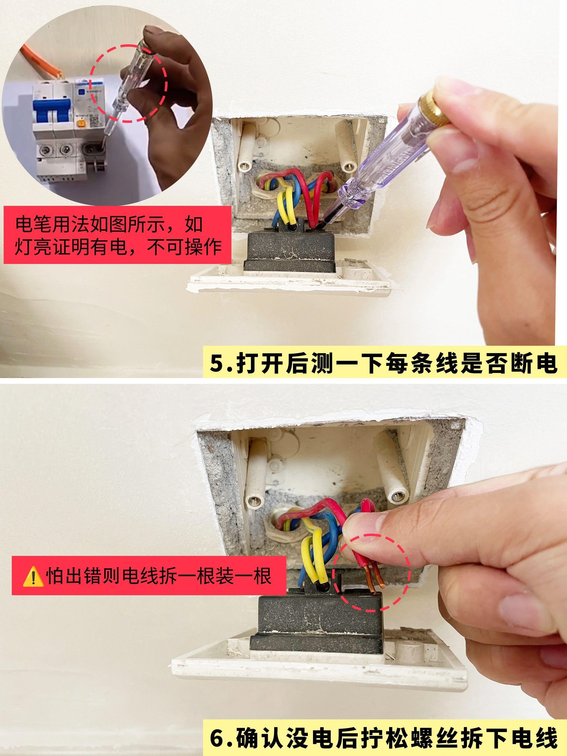 再次提醒,一定要在總閘關閉下進行,確認安全後擰鬆電線和插座背後的螺絲。