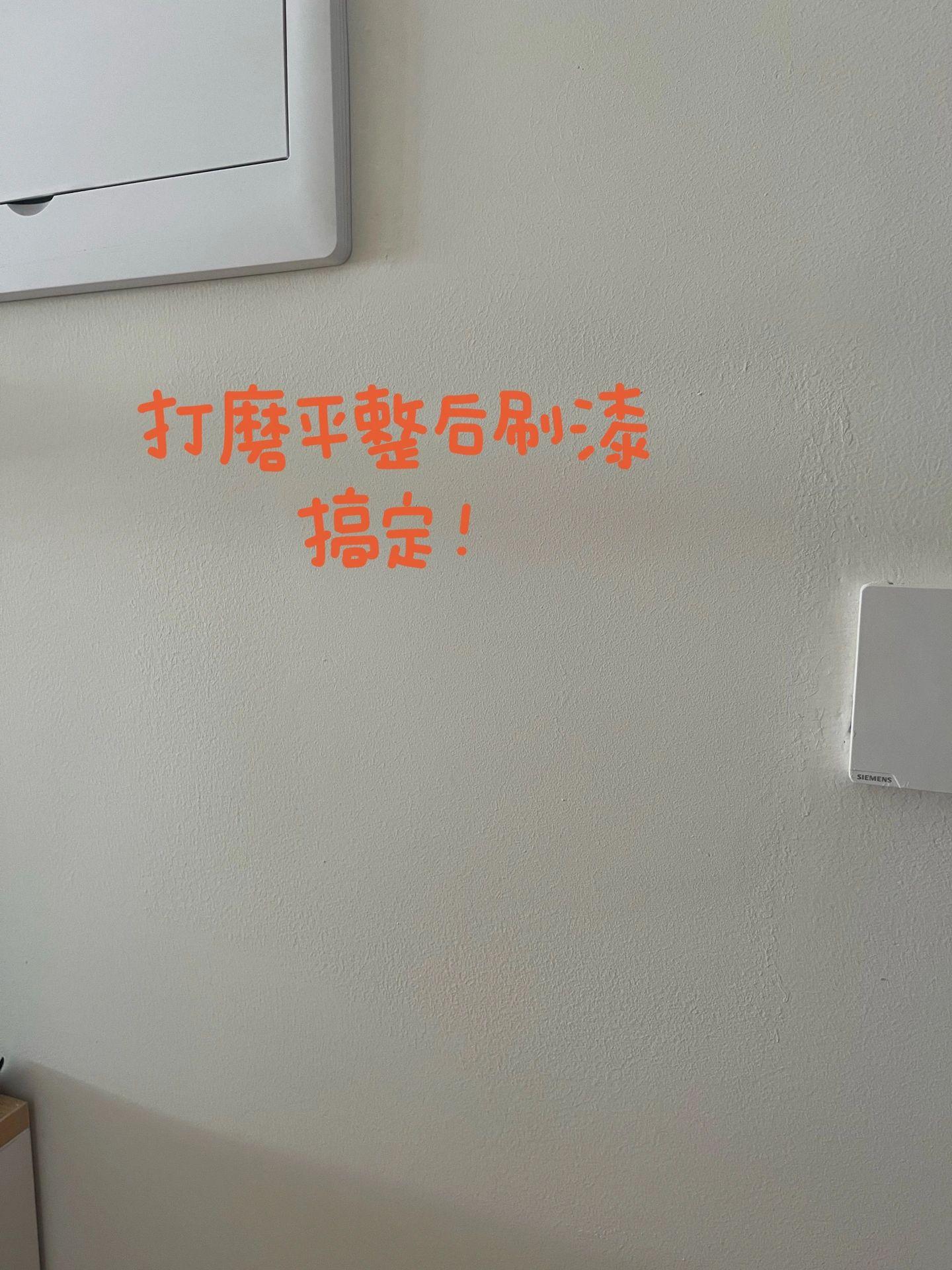接着再用砂紙,把凸起的位置輕輕的打磨平整,隨後塗上白漆即可。(注意這個辦法更適合白色牆面,因爲其他顏色的牆面,後期買的補牆漆很容易和之前刷的漆有色差。)