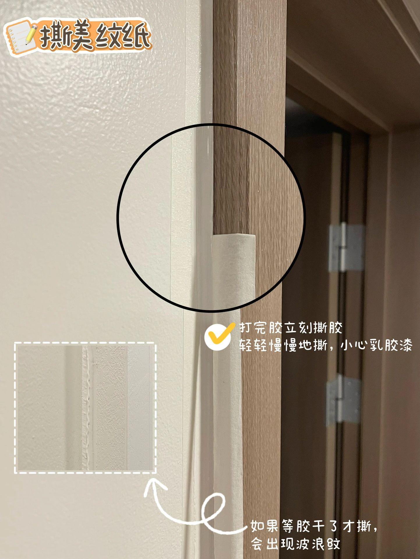 壓膠結束後,立即撕掉美紋紙。不要等膠幹了再撕,那樣可能就撕不下來了。