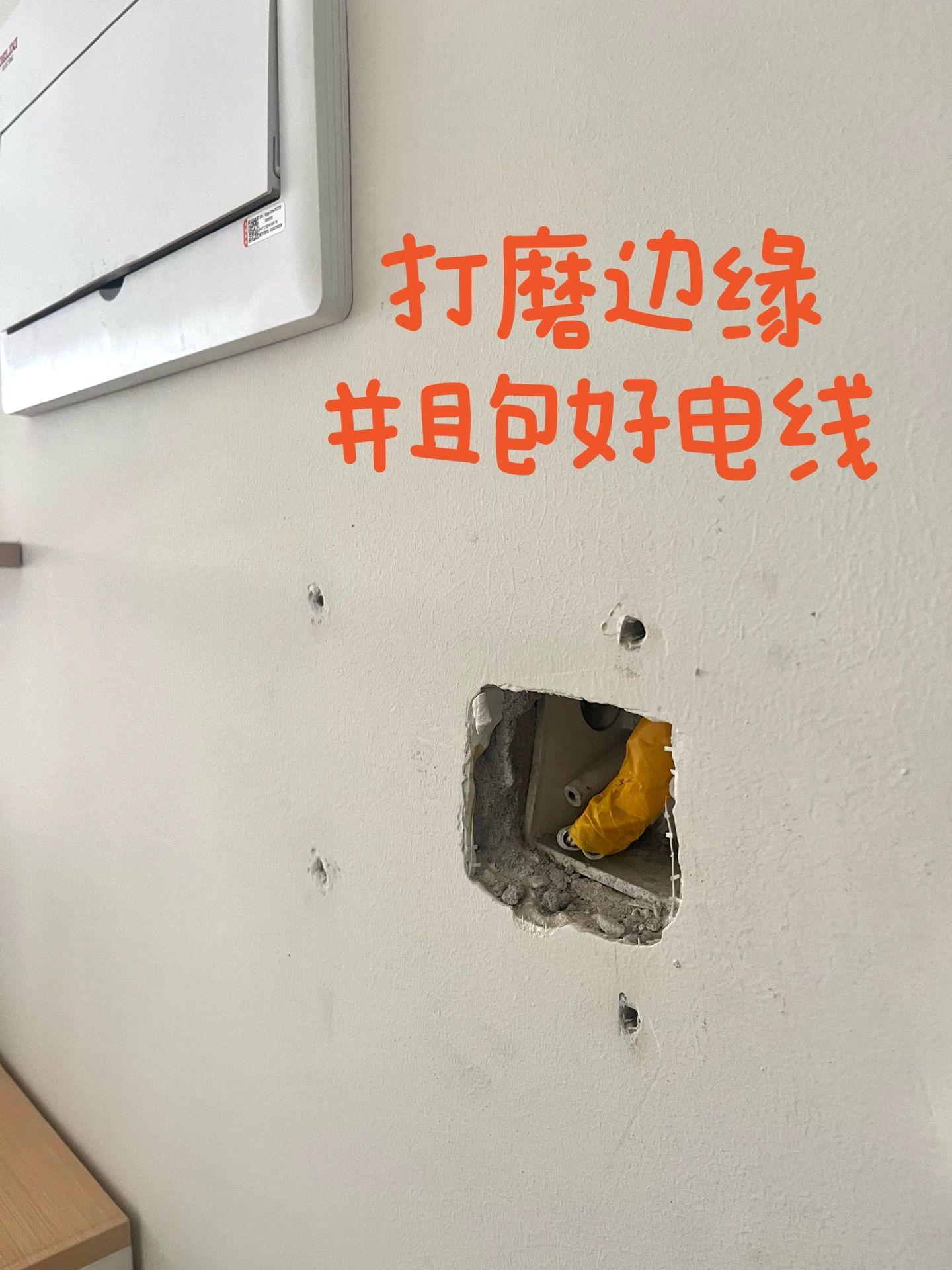 如果遇到有電線的地方,一定要提前關閉總閘電源,然後用電工膠布包好裸露的電線再操作。用砂紙把需要修補的區域的牆皮邊角打磨一下,主要是打磨掉一些尖銳、掉渣的部分。