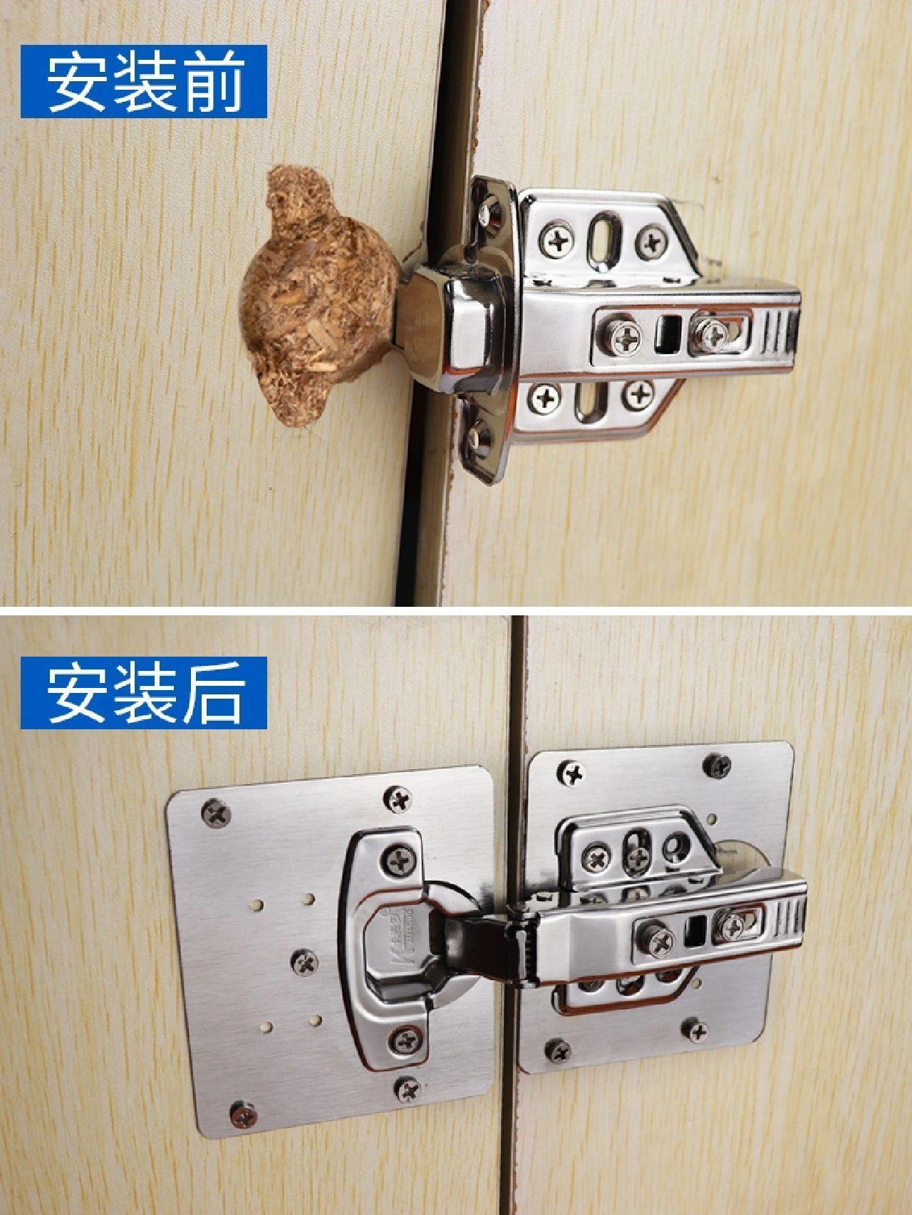 自己在網上買個“鉸鏈孔修復片”,裝在鉸鏈後面,再固定到櫃門上就能解決了,只要家裏有螺絲起就能搞定,當然有手電鑽更好,實在沒有也可以找鄰居或者物業的借一下,或者讓他們幫忙裝一下,基本上不到10元成本就能搞定。