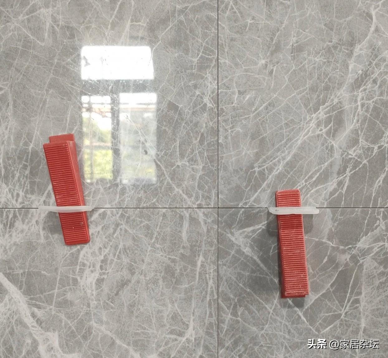 ①、使用留縫卡子,留置瓷磚縫隙。保證了瓷磚瓷磚的縫隙大小均勻一致。鋪完以後,縱橫交錯,非常好看。