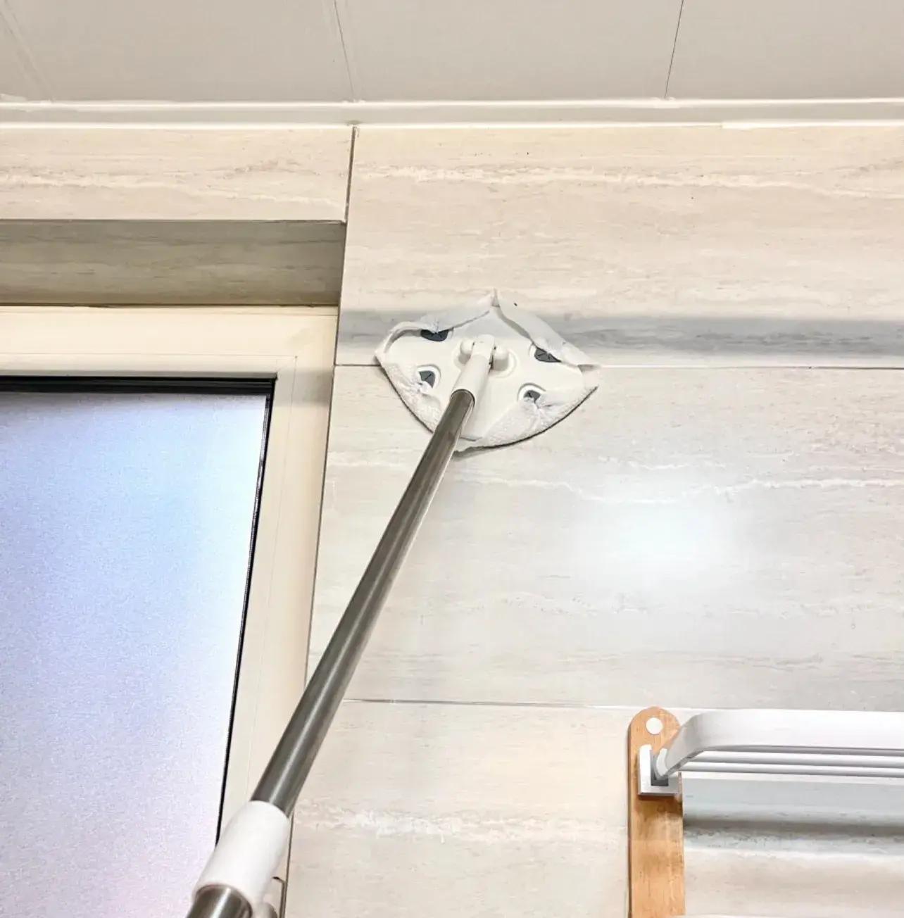 高處、旮旯拐角的灰塵,工具很多,我是用了一個洗臉巾拖把,基本上牀下、高處、縫隙……這些不好下手的地方都能夠到,還能把洗臉巾廢物利用上。