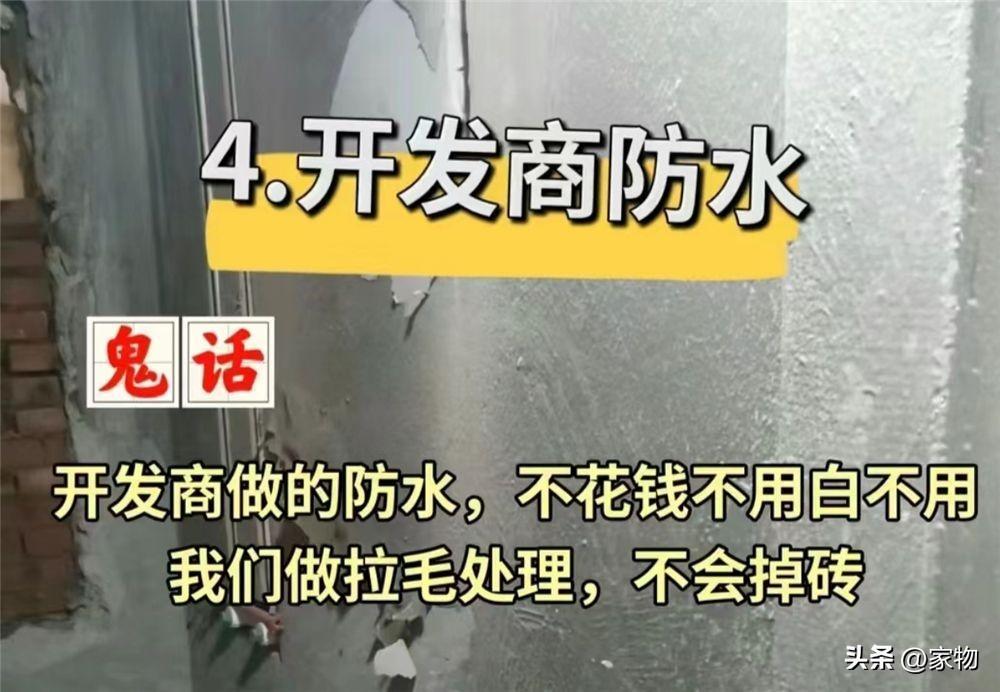 開發商的防水,有些瓦工師傅會建議你保留,讓你直接貼磚,快平穩地將你的錢忽悠走,但別聽他的,防水不重新做,這些不知道做了多久、質量如何的防水,反而會給日後滲水增加更大隱患,到時候可就更麻煩了。