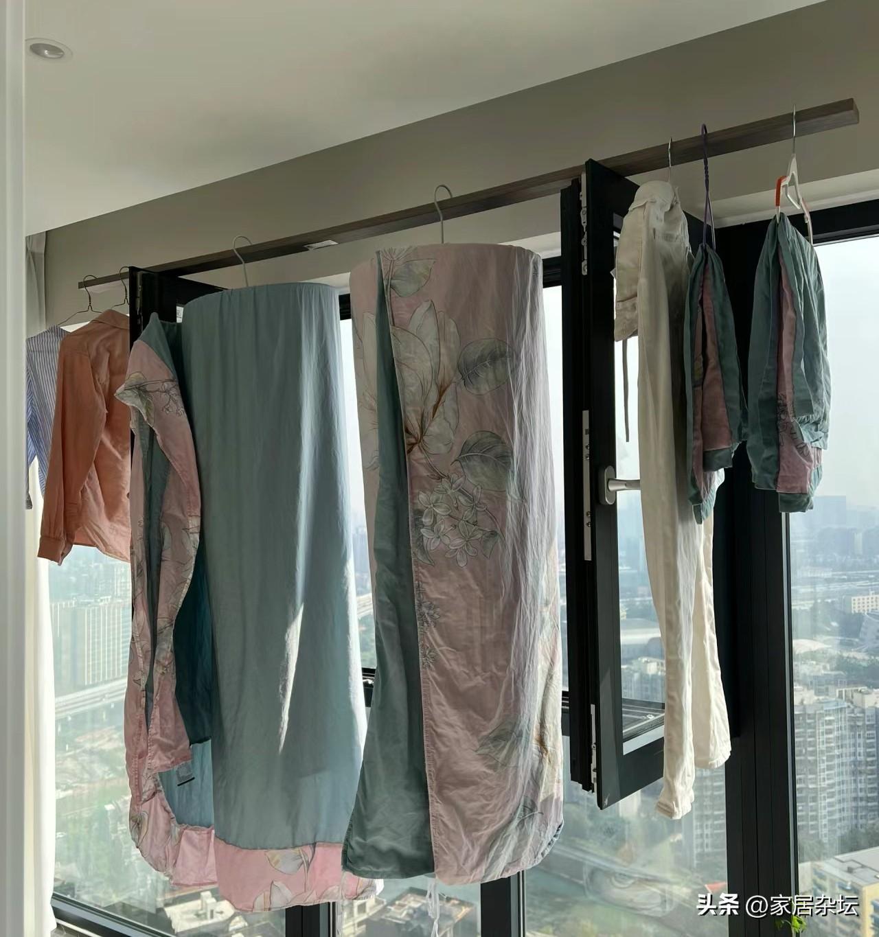 ②、晾好衣服以後,發現窗戶打不開。因爲衣服都掛在晾衣架上晾曬,這時去開窗戶,發現窗戶的開啓扇被擋住了。