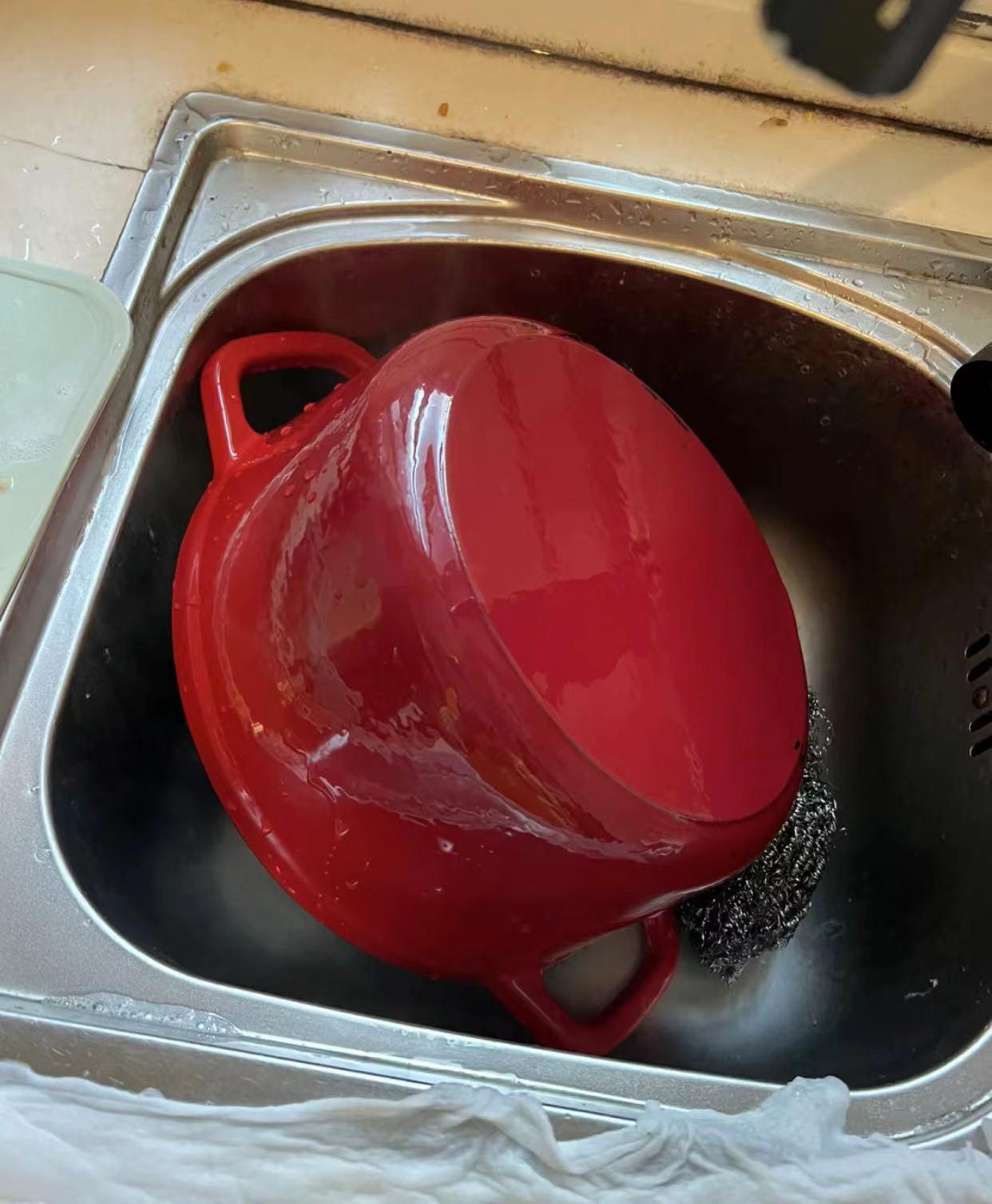 在使用琺琅鍋的時候,每次刷鍋都需要格外費神,一方面是它確實很難刷乾淨,二是這種鍋,畢竟是鑄鐵,也就是“鐵鍋”,所以很容易生鏽。