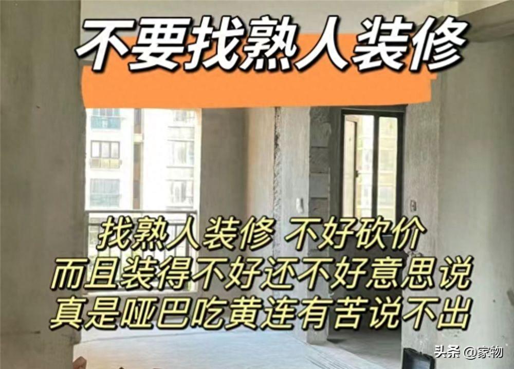 我發現,很多中國家庭有啥事兒就喜歡找熟人,但別的都行,唯獨裝修這個事兒,千萬別找熟人,找熟人裝修的下場,可能就是到最後自己被熟人坑,還不好意思開口返工,喫虧的還是自己。