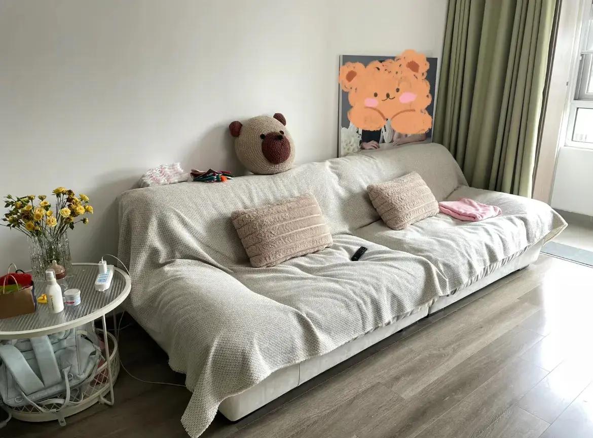 蓋在沙發上,一點也沒比專門的沙發蓋布差哪,而且髒了還能塞進洗衣機洗。