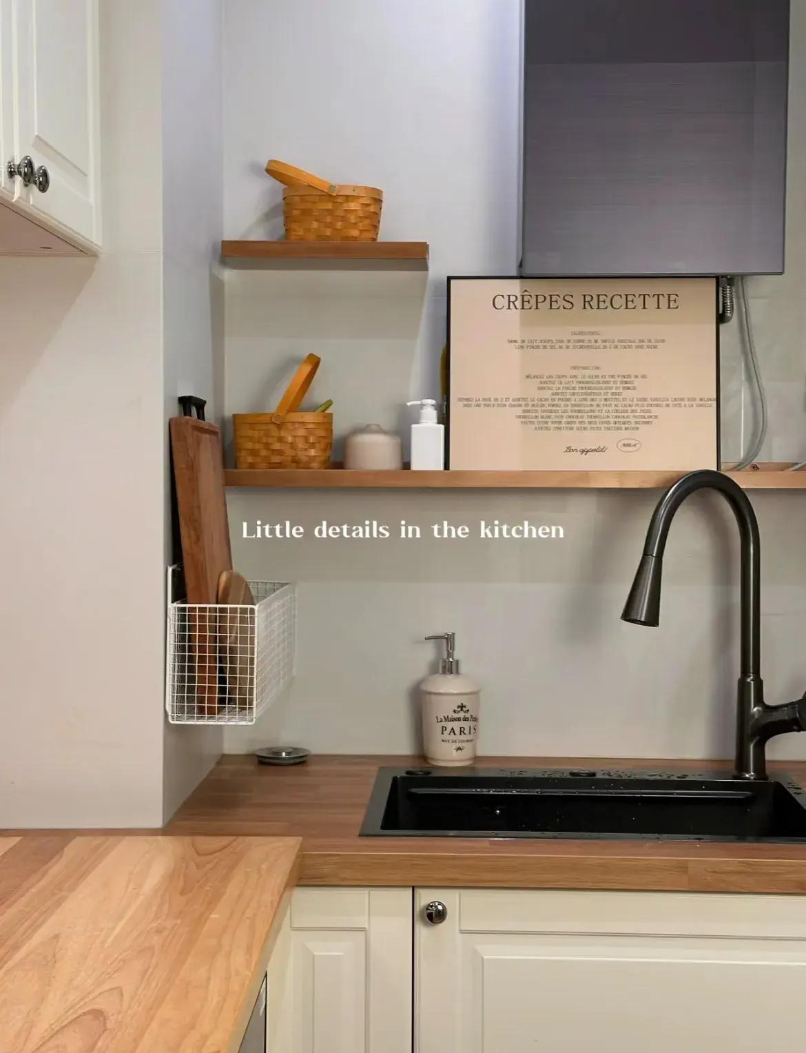 廚房的瓶瓶罐罐利用它壁掛收納的同時,收穫一個乾淨清爽的檯面;隨手洗完的碗盤也可以放在上面,水槽周邊的瀝水架也省了。