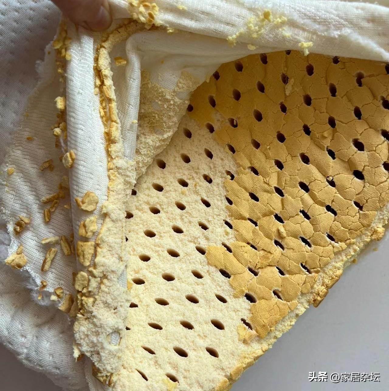 ②、開裂掉碎末,甚至產生了異味。這就是乳膠枕使用年限長了以後,逐漸產生了一種變化。當然了,也可能是劣質的乳膠枕。