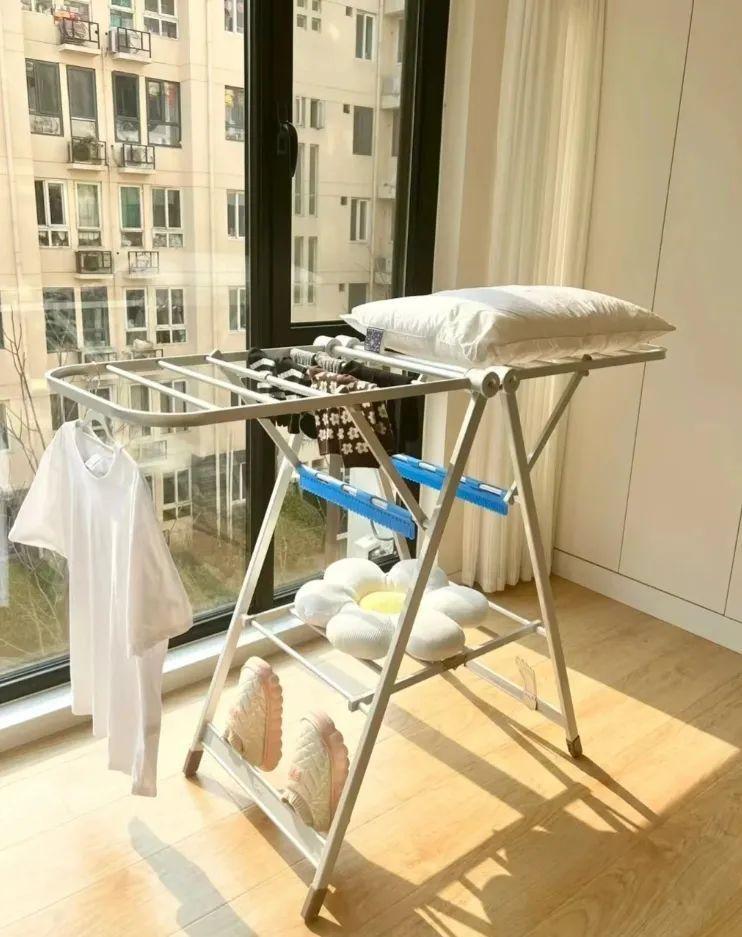 網友@南極到北極看企鵝:我本以爲家裏的隱形晾衣架足夠實用了,結果有了孩子才發現,根本不夠用!不得已只好再買一個摺疊晾衣架,用過是真香啊!