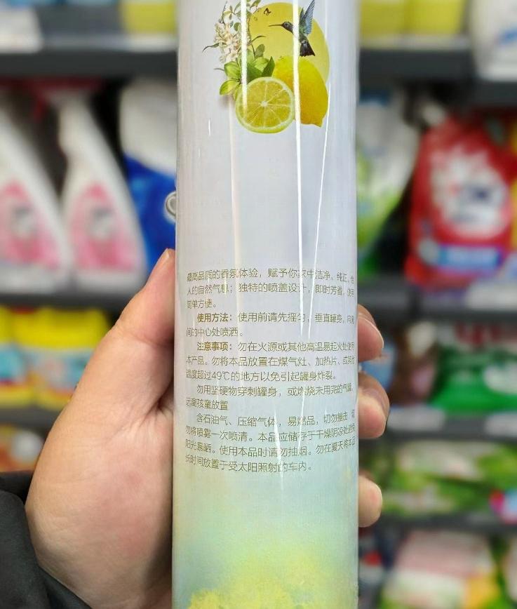 我跑了好幾家商超,發現貨架上的空氣清新劑產品,根本沒有“成分標籤”(涉及到多個品牌)。直白點說就是,作爲消費者,我們不能通過外觀來判斷出裏面的主要成分。