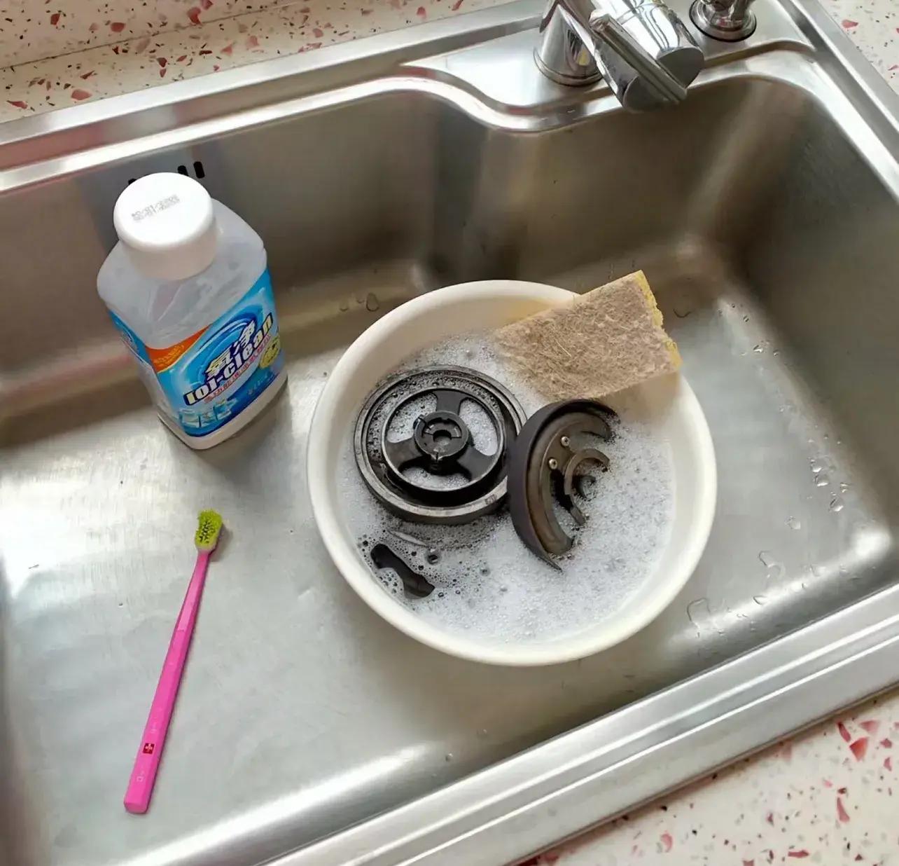 底座縫隙又多,得上各種小刷子,拆解下來的爐頭,硬刷還刷不乾淨,得泡泡再刷。