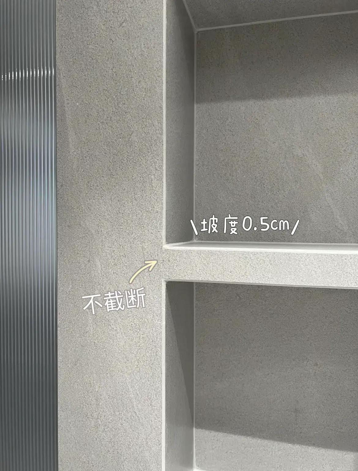 另外,如果衛生間是大磚,壁龕中間的層板處,不截斷會比截斷再拼縫更美觀。