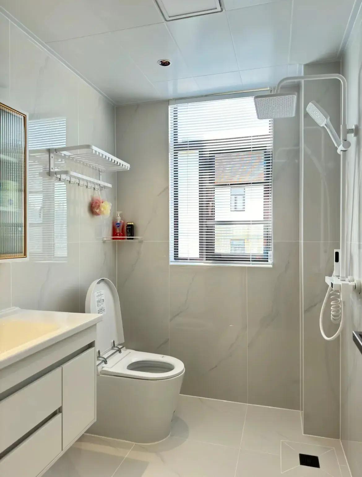 極簡流行後,基礎裝修也發生了一些細節上的改變,比如衛生間,把各種收納置物架,換成壁龕、窗臺收納,整體性更強,視覺上還更簡潔。