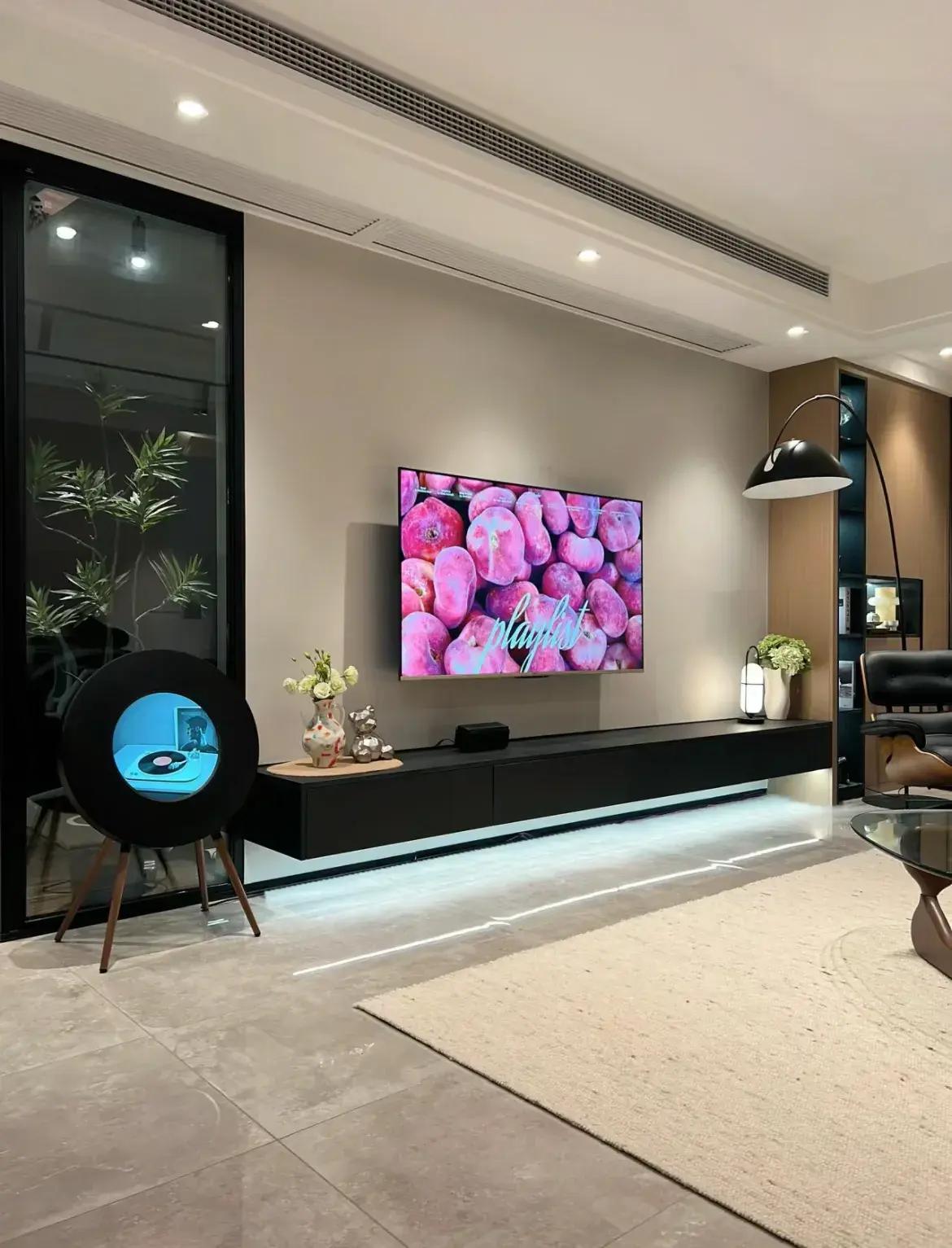 電視櫃、浴室櫃懸空,地面更好清潔,沙發沒辦法懸空的,乾脆就直接落地。