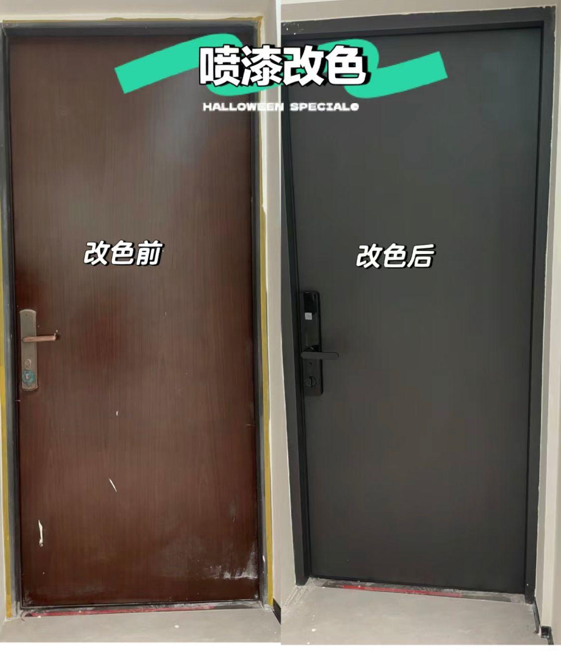 還有小夥伴覺得開發商的豬肝色大門不貼裝修風格,這個可以重新刷環保漆解決,要啥顏色都有,既省錢又創意,dei 不dei?