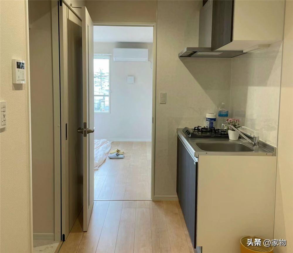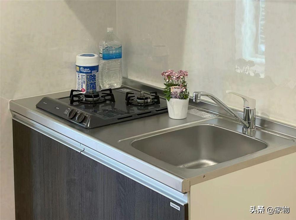 只不過,留給櫥櫃檯面的操作區就很小了,想要切菜的話,還要將砧板架在水槽上纔行,畢竟是30㎡的小房子,櫥櫃檯面捉襟見肘也是無奈之舉,實在懶得做飯,還可以便利店買嘛。