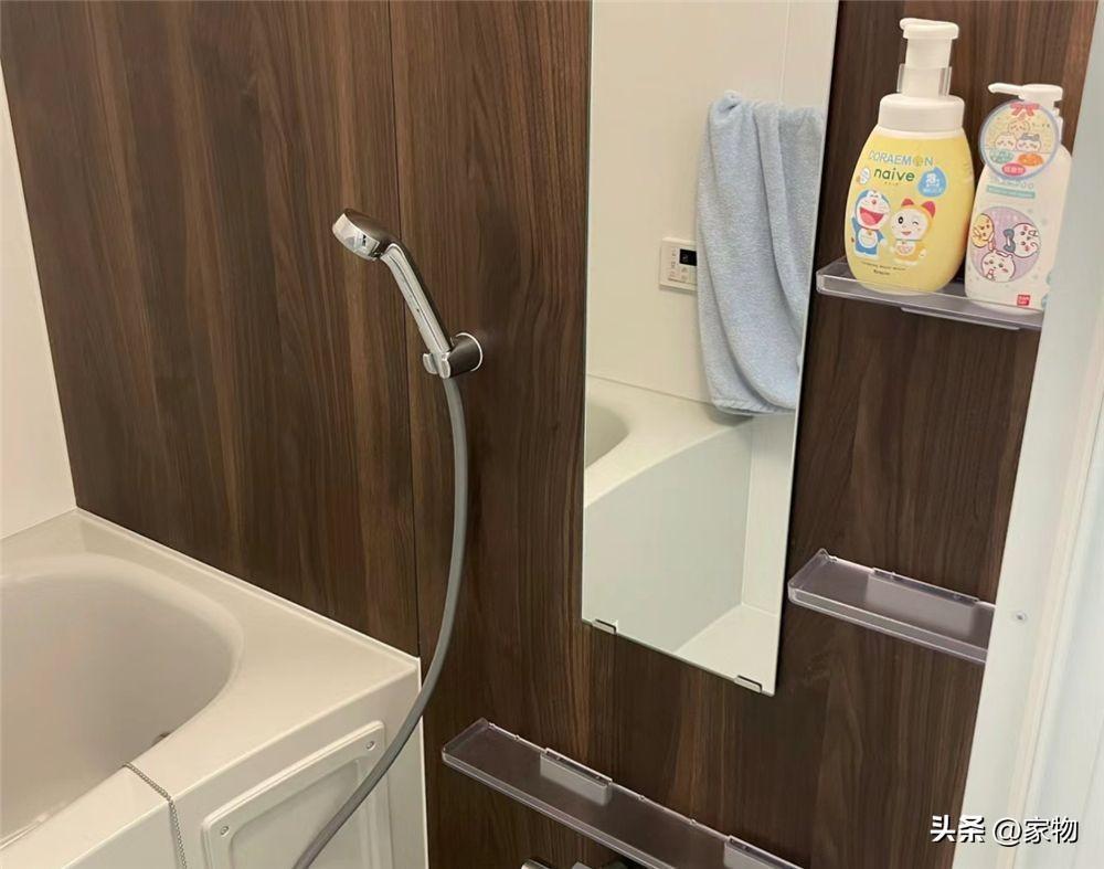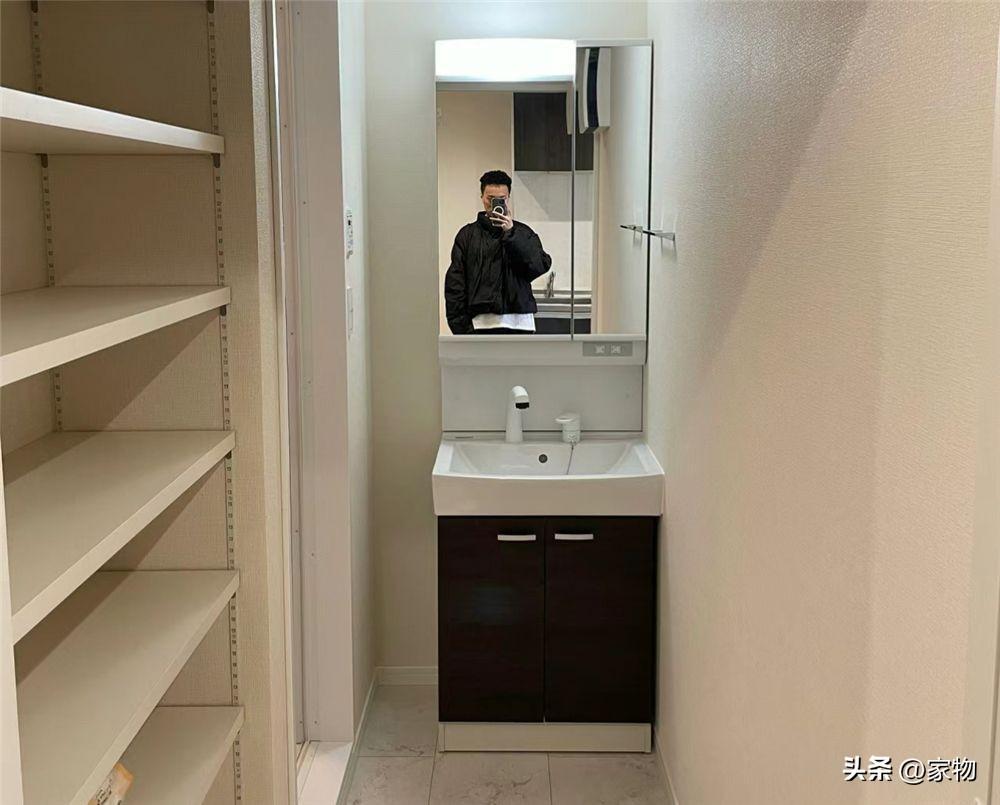 很多日本的這種小房子,即便面積再小,也要做成三分離式衛浴,這個家也不例外,廚房對面的小門進入其中,正對一個小小的洗手檯和鏡櫃,旁邊做牆龕收納浴巾和其他雜物。