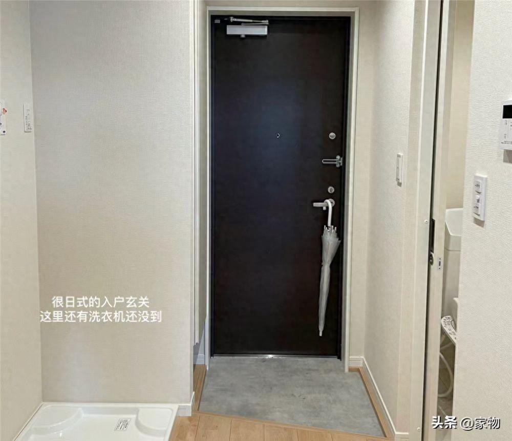 入門玄關是很傳統的日式感覺,做了高低臺分隔區域,留出一個小小的玄關落塵區方便換鞋和分隔室內外空間;手邊的櫃櫥還可以收納衣服和進出家門時的隨身用品,看起來真的蠻舒服的。