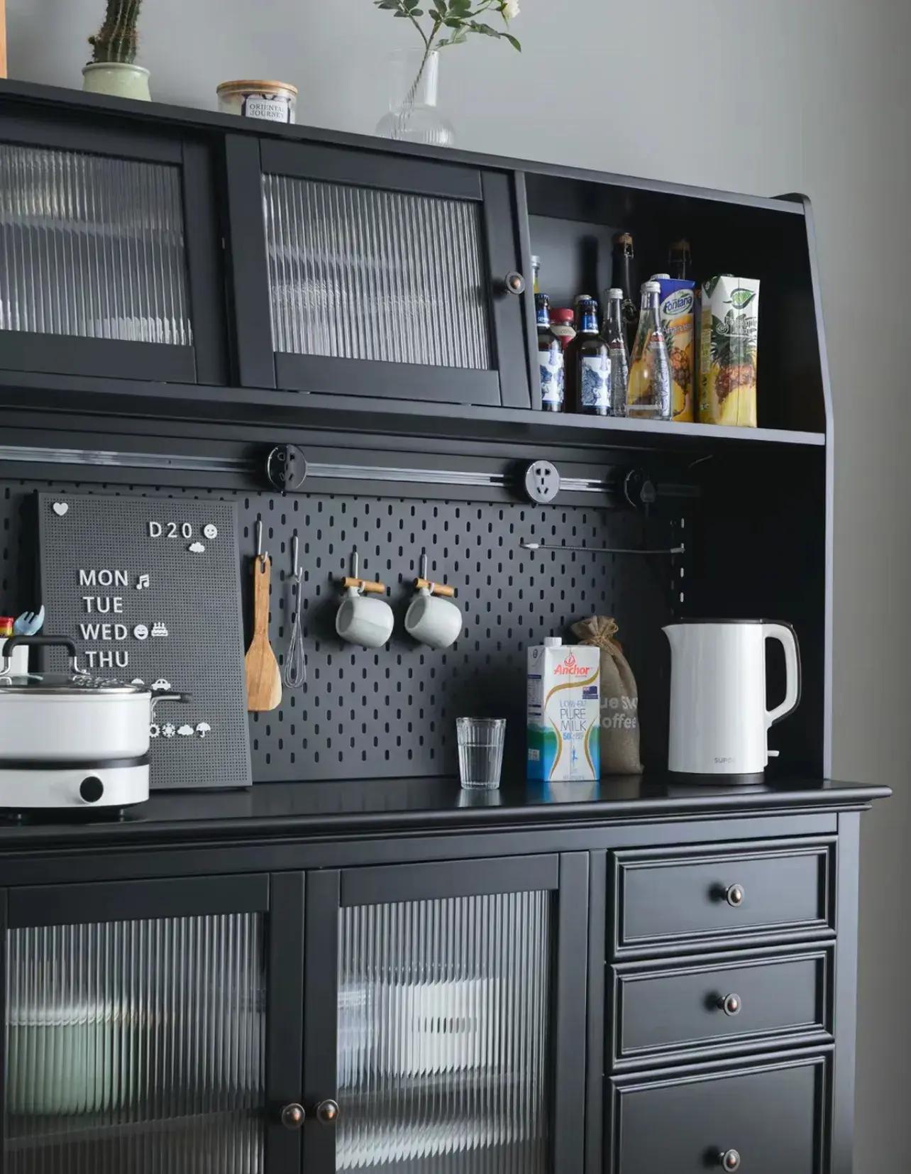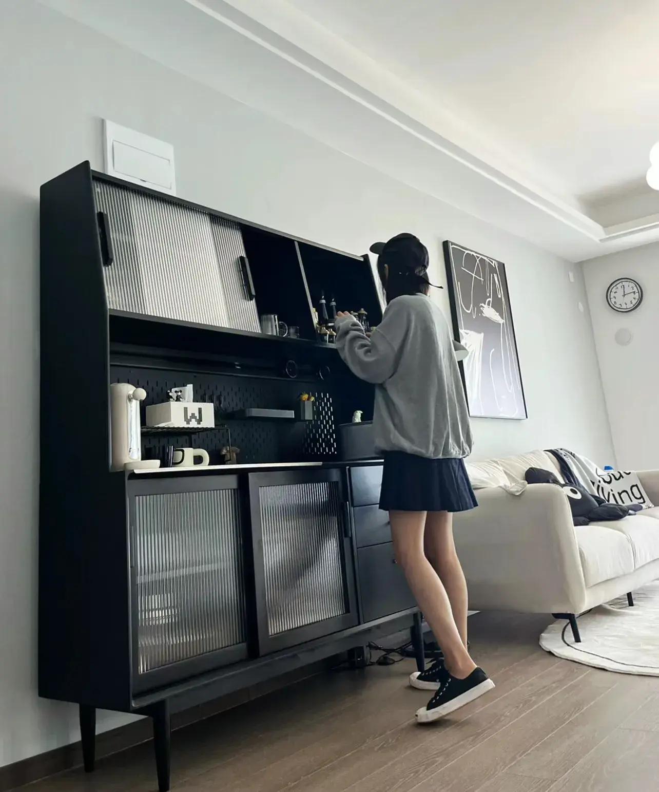 下來就是這種高一點的成品餐邊櫃,說實話,單論空間利用率可能比定製櫃遜色,但你別忘了,咱家裏的櫃子,黃金收納區就那麼高。