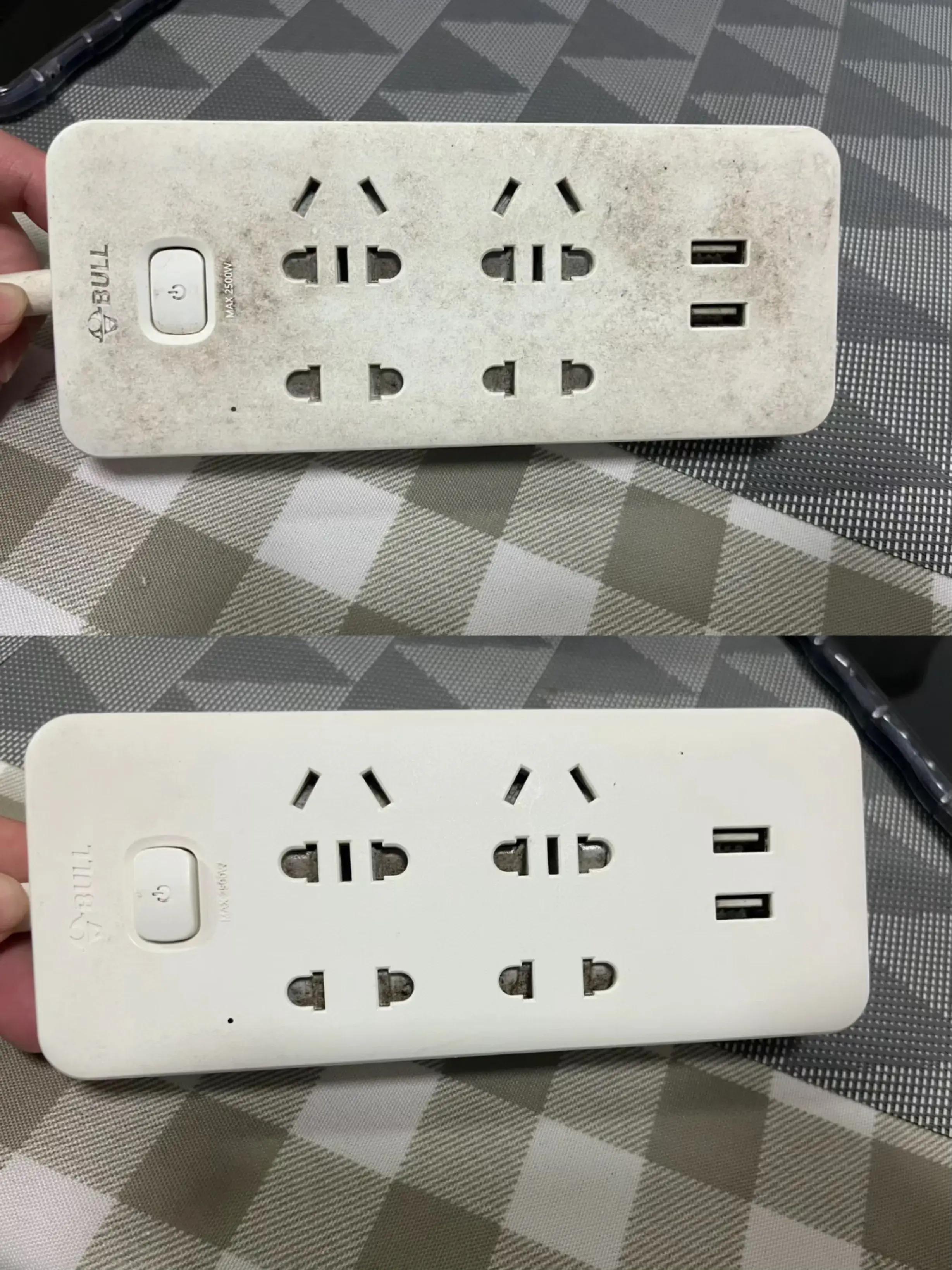 多年未擦的插線板,順便也試了試,沒想到擦完跟新買的一樣乾淨,還有各種白色數據線,也屢試屢爽。
