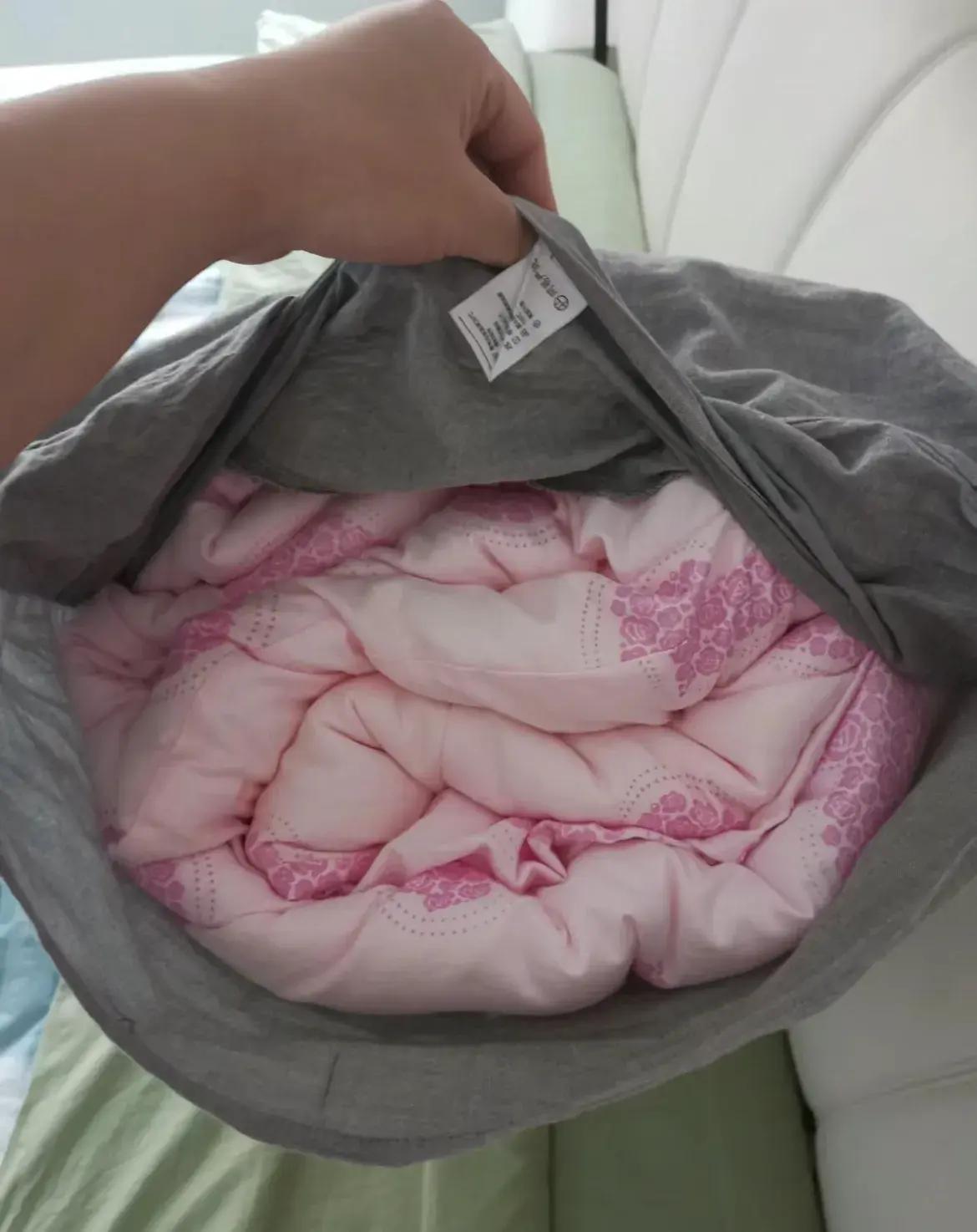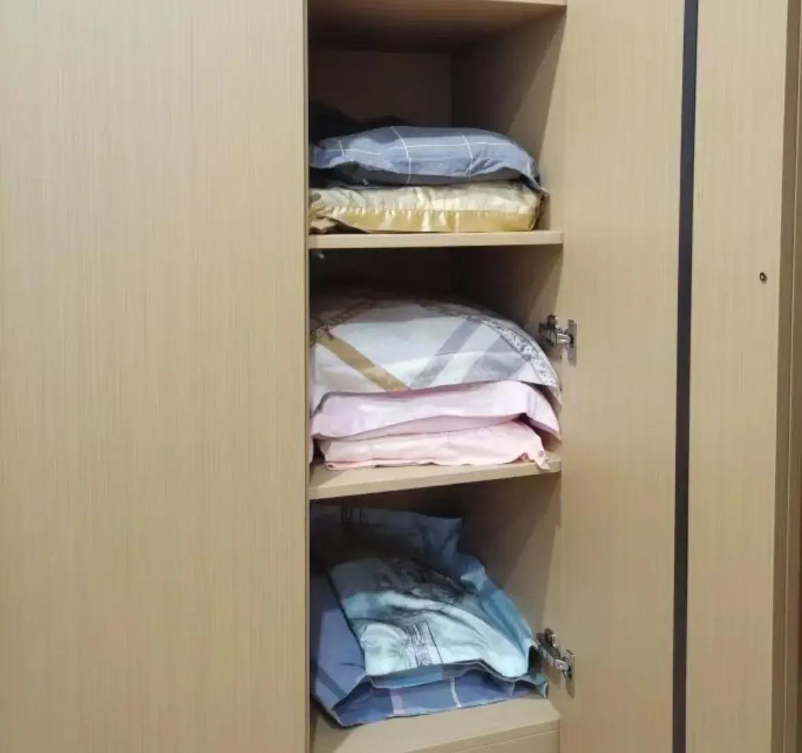 到了我媽這,她的櫃子裏只有枕頭,沒見牀品,我還挺好奇,問過之後才知道,她把牀單、被罩全塞進枕套裏面了。