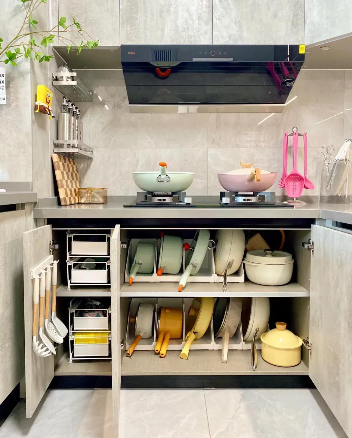 我就給她看了眼,別人的鍋具這樣放,整整齊齊,結果,她就用她的居家智慧給咱整了出大戲。