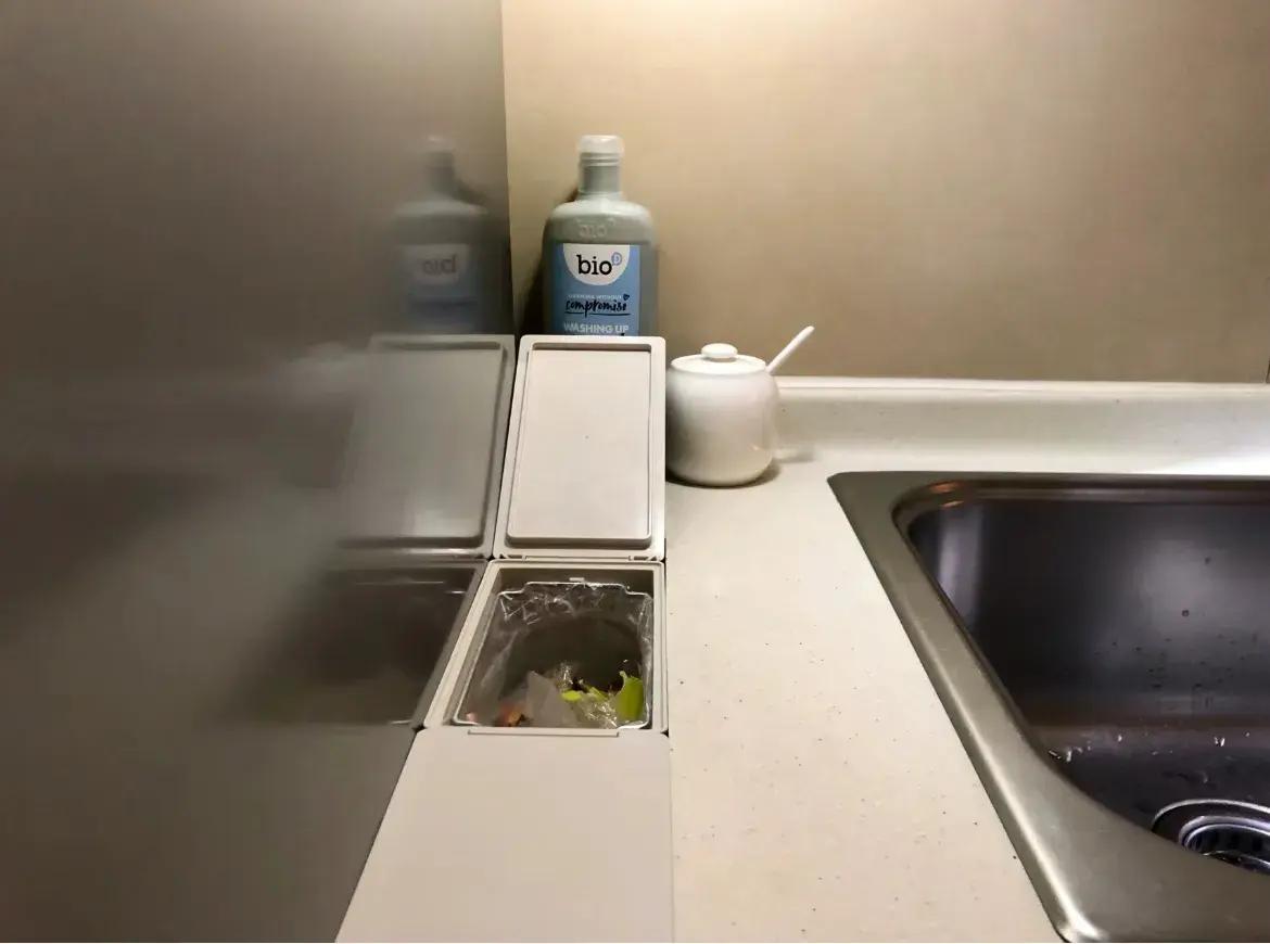 順便調侃下,這一排三個垃圾桶的陣仗除了小區公共垃圾桶,居家我還是第一次見呢!