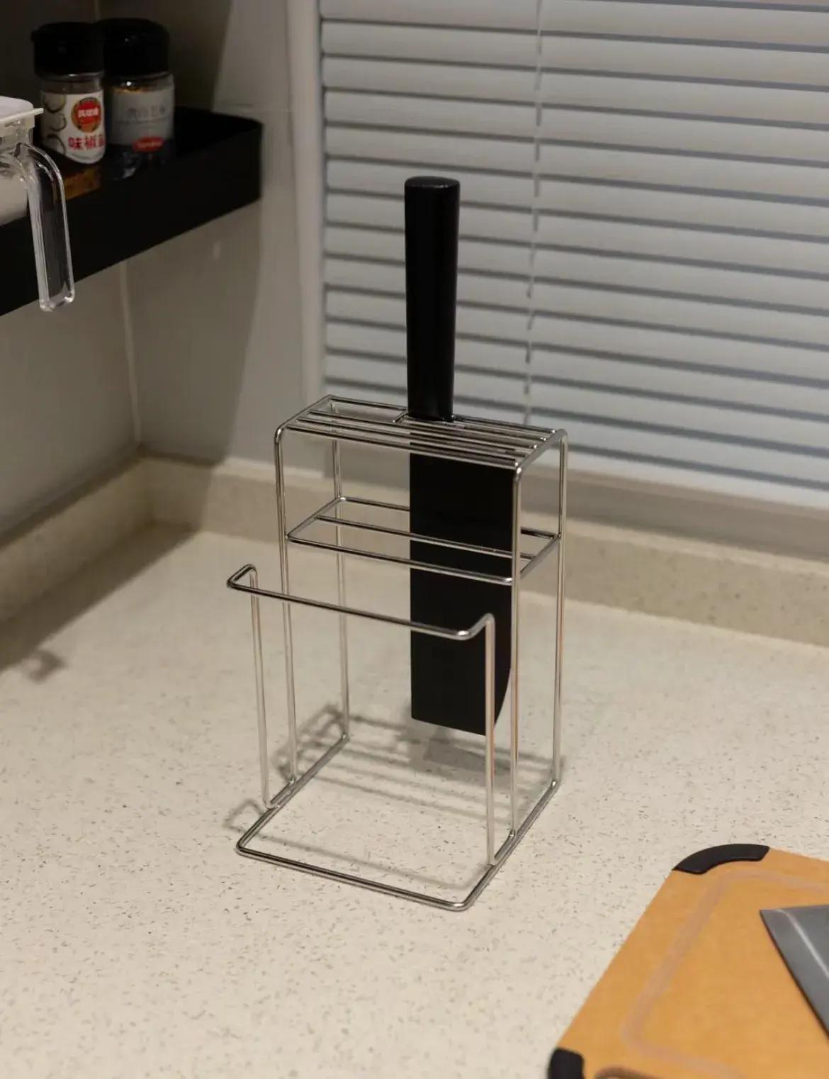順便在她廚房看到的,還有這個刀具菜板收納架,因爲樣式夠簡單,忍不住多看了兩眼。