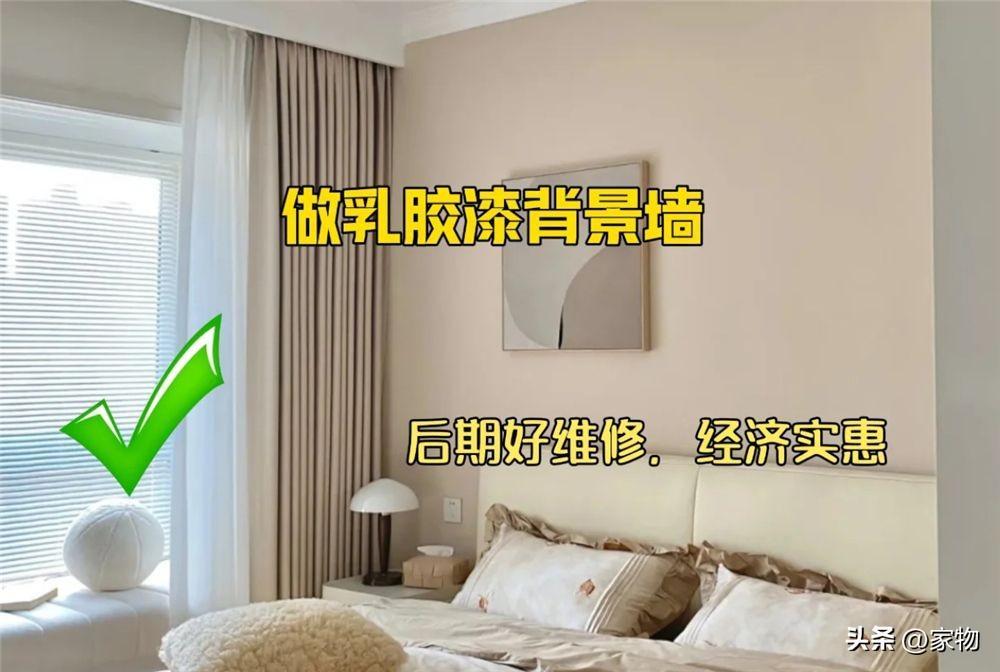 乳膠漆的背景牆往往就沒這些問題,入住後會弱化它自己的存在感,顯得乾淨整潔,如果嫌單調,掛上一幅畫就OK。