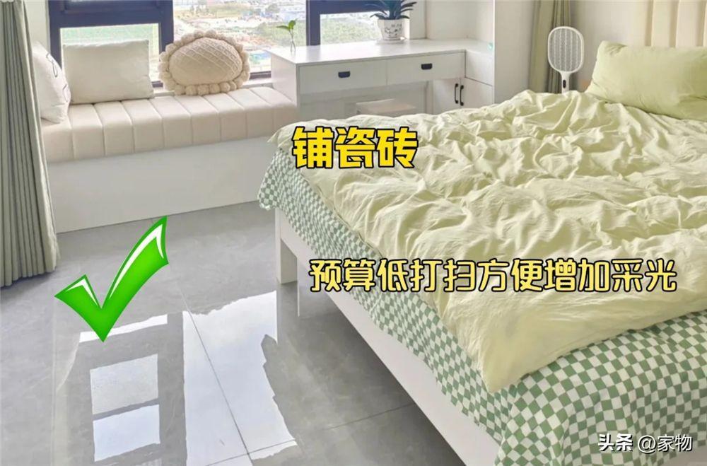 相對而言,臥室鋪瓷磚真的沒問題,不僅看起來亮堂還很好打掃,所以比起木地板來說,倒不如直接鋪瓷磚來得舒心方便。