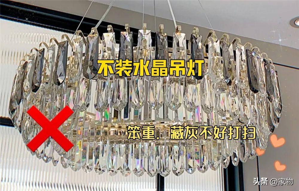 其實不止是水晶吊燈,臥室裏包括羽毛吊燈、木質吊燈這些吊燈類,我都不建議大家裝,尤其是裝到牀上面,日常積灰落塵,來一陣風牀上就一層土。