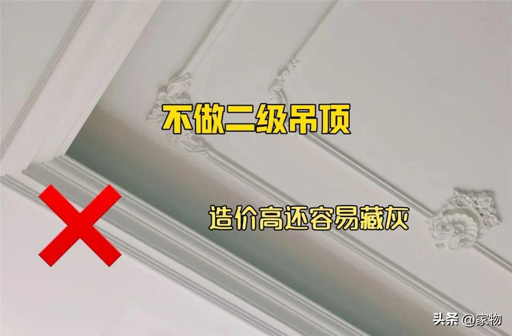若不是別墅洋房這種高層高的戶型,做吊頂的缺點可就太多了,尤其是那種既壓低層高,造價高還容易藏灰塵的二級吊頂,簡直是雞肋之最。