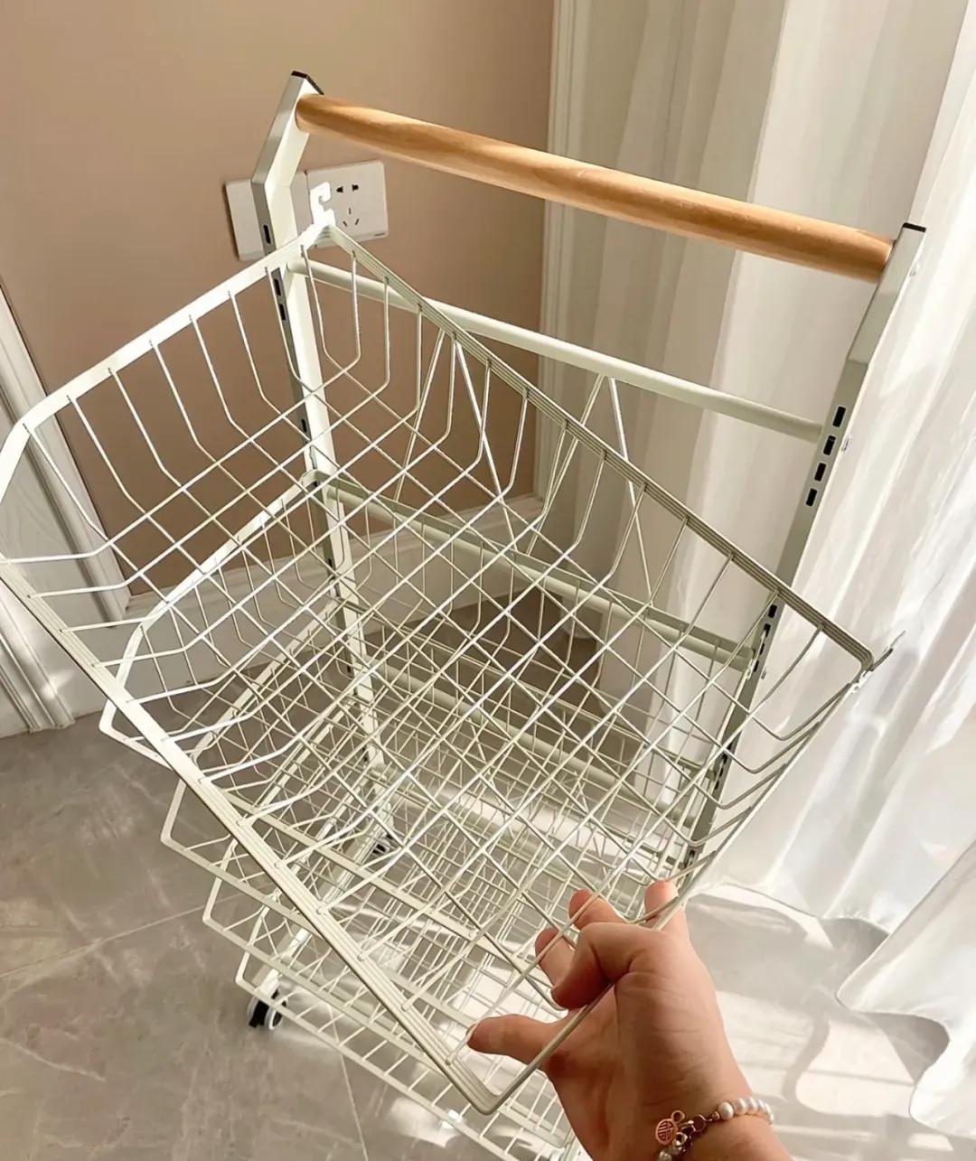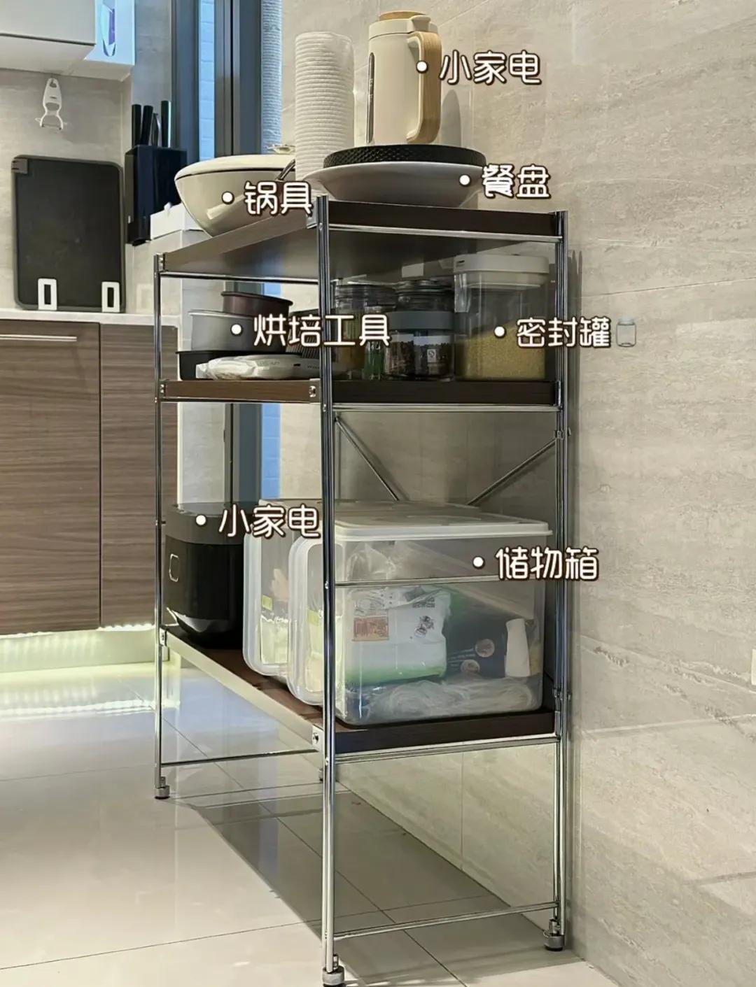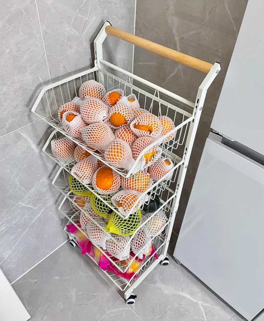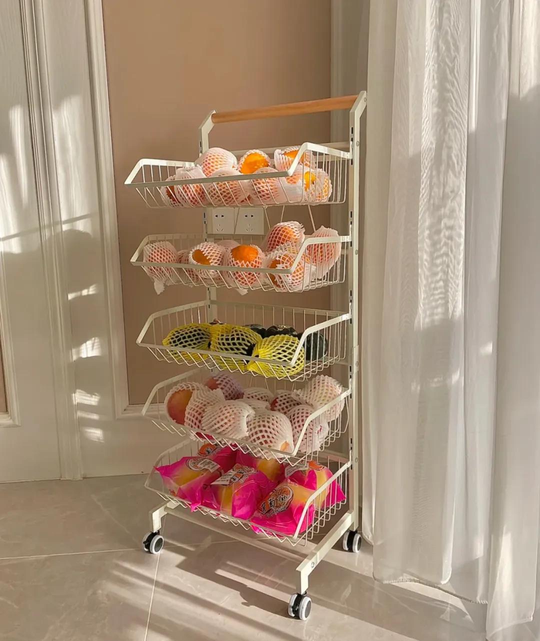 集顏值與功能於一身移動果蔬收納架,派上用場了,它還帶輪子和剎車,可以隨意拖動。