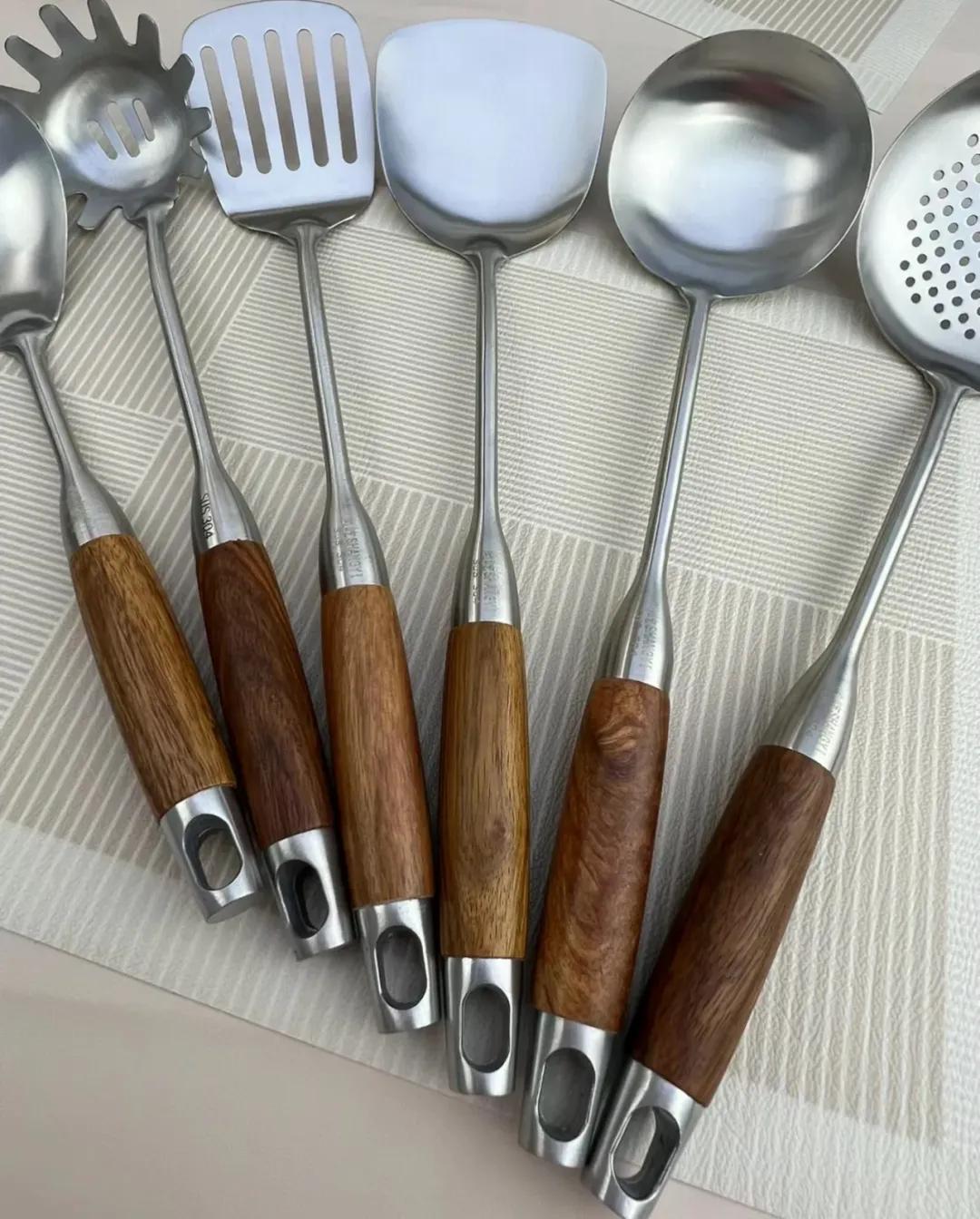就是這一整套超有質感的304不鏽鋼鏟子大集合,搞定所有中式烹飪方法,煎炒煮燜炸。