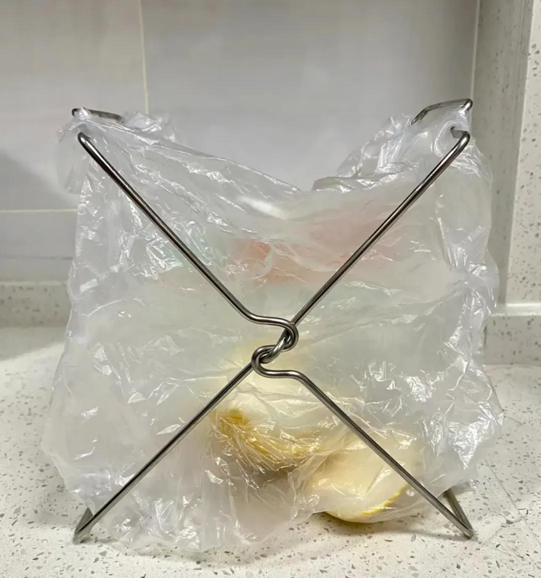 有想過買桌面垃圾桶用, 但它太佔空間了,本身我檯面就不夠用。垃圾支架的出現,簡直完美。