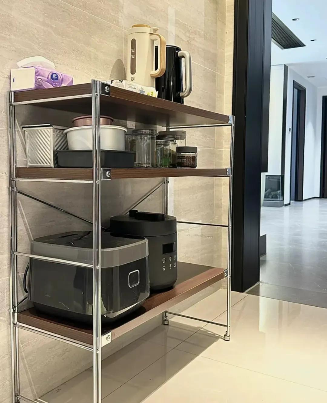 想要的東西都能放在觸手可及的地方,又不顯得雜亂,不鏽鋼的支架承重也很不錯,放重的東西也不擔心不穩。