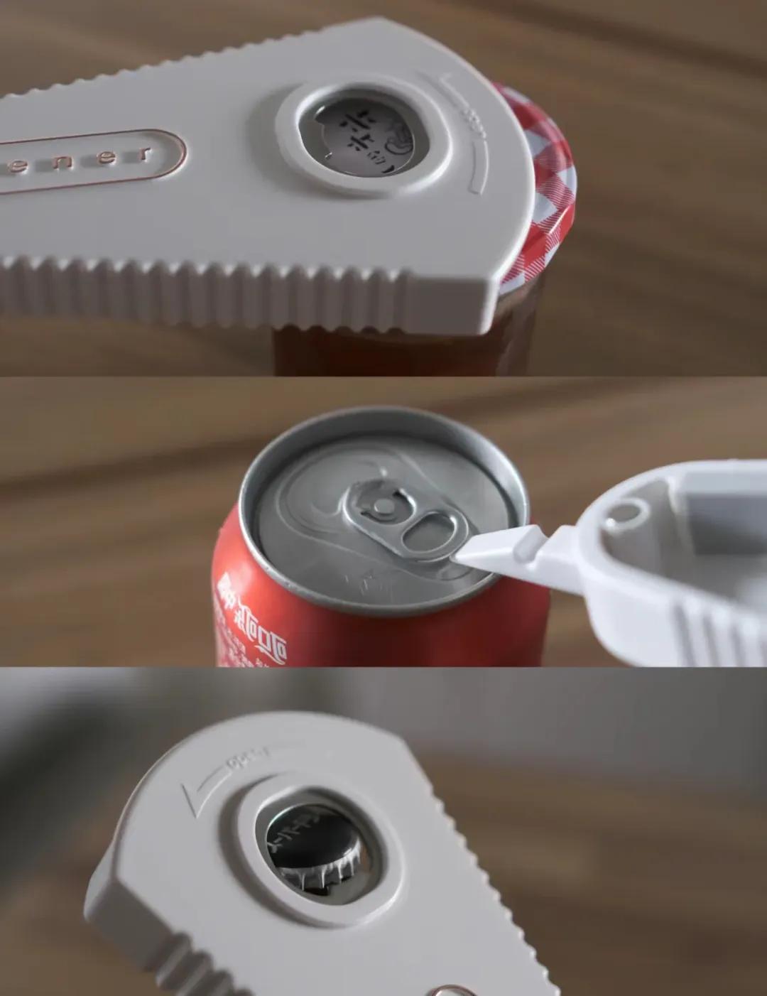 它側面有一條橡膠條,增加摩擦力,三角形的坡度適用於各種尺寸,各個口徑的瓶子都可以卡住然後輕鬆擰開!