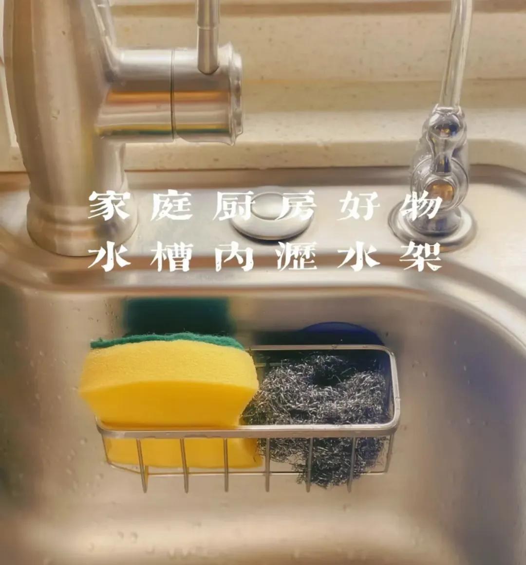 之前我家的百潔布和鋼絲球都直接擺在水池邊上,除了難看還在臺面上留下一灘水漬。