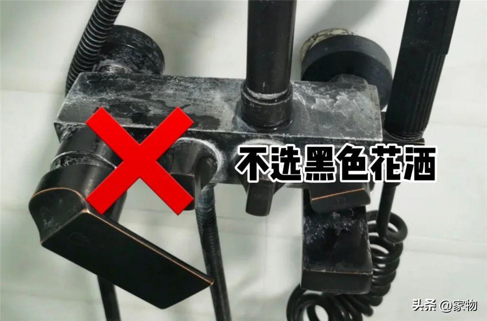 若我再選花灑的話,肯定會選白色或者是不鏽鋼的,它倆相比於黑色的花灑來說,要更耐髒一些,起碼對於這些水鏽水漬來說,更不明顯。