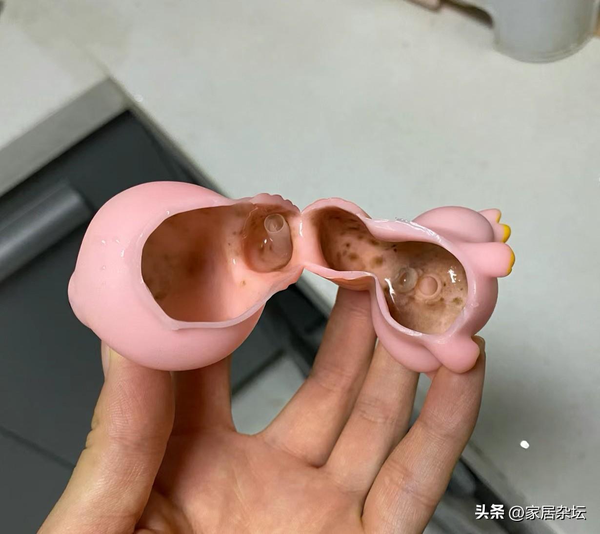 對於這類玩具而言,一般很難晾乾。時間長了,裏面就產生了黴菌。