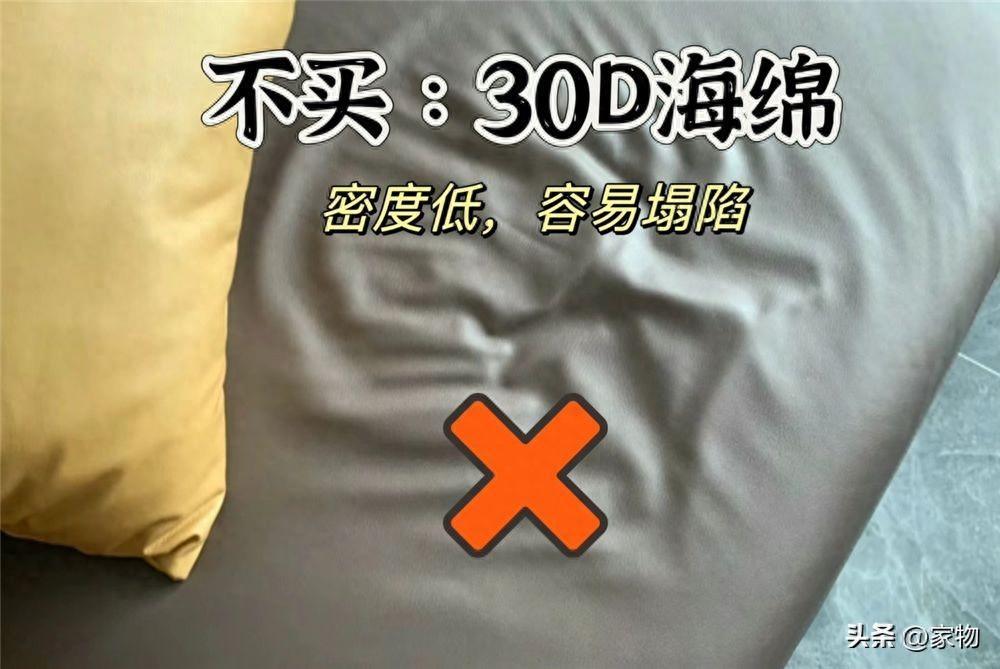 沙發海綿密度太低的話,真的是特別容易塌陷,一些30D的海綿如果作爲沙發的主要填充物,這沙發最多坐半年,就會有一個個的屁股坑,看着外面的包布都是皺的。