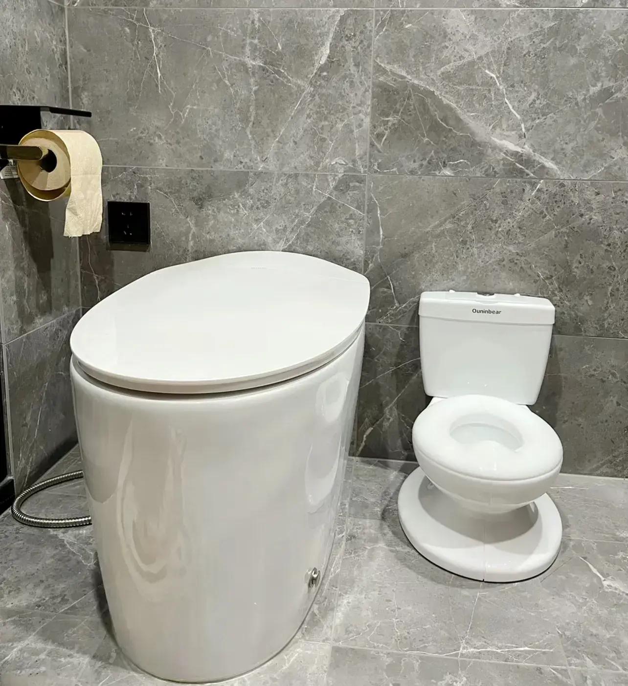 於是就立刻給小孩買一個,用了之後才發現大人受不了,倒馬桶實在太痛苦。