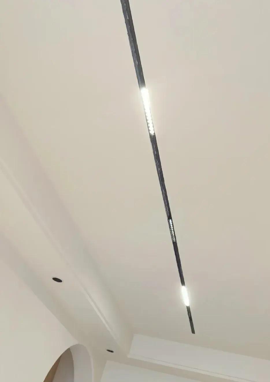 氛圍,咱說道兩句:它不僅不能提升燈光氛圍還會破壞氛圍。因爲所謂無主燈氛圍感,主要講究的是一個明暗交替,可目前的磁吸軌道燈,設計師必然會給配上幾個泛光燈,泛光燈一出,就意味着它能把空間照個通亮,那還談什麼氛圍嘛?